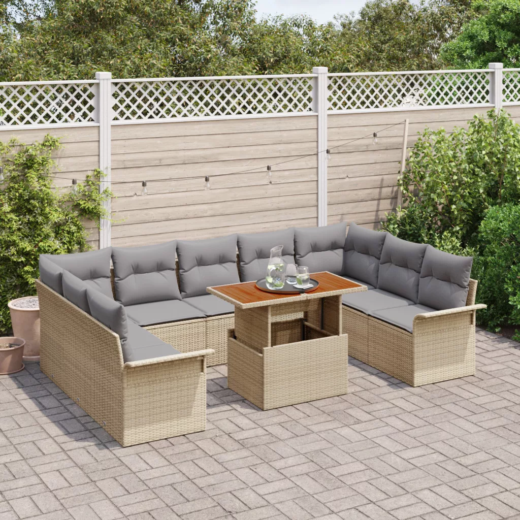 10 darabos kerti étkezőszett párnákkal bézs poli rattan akáciából