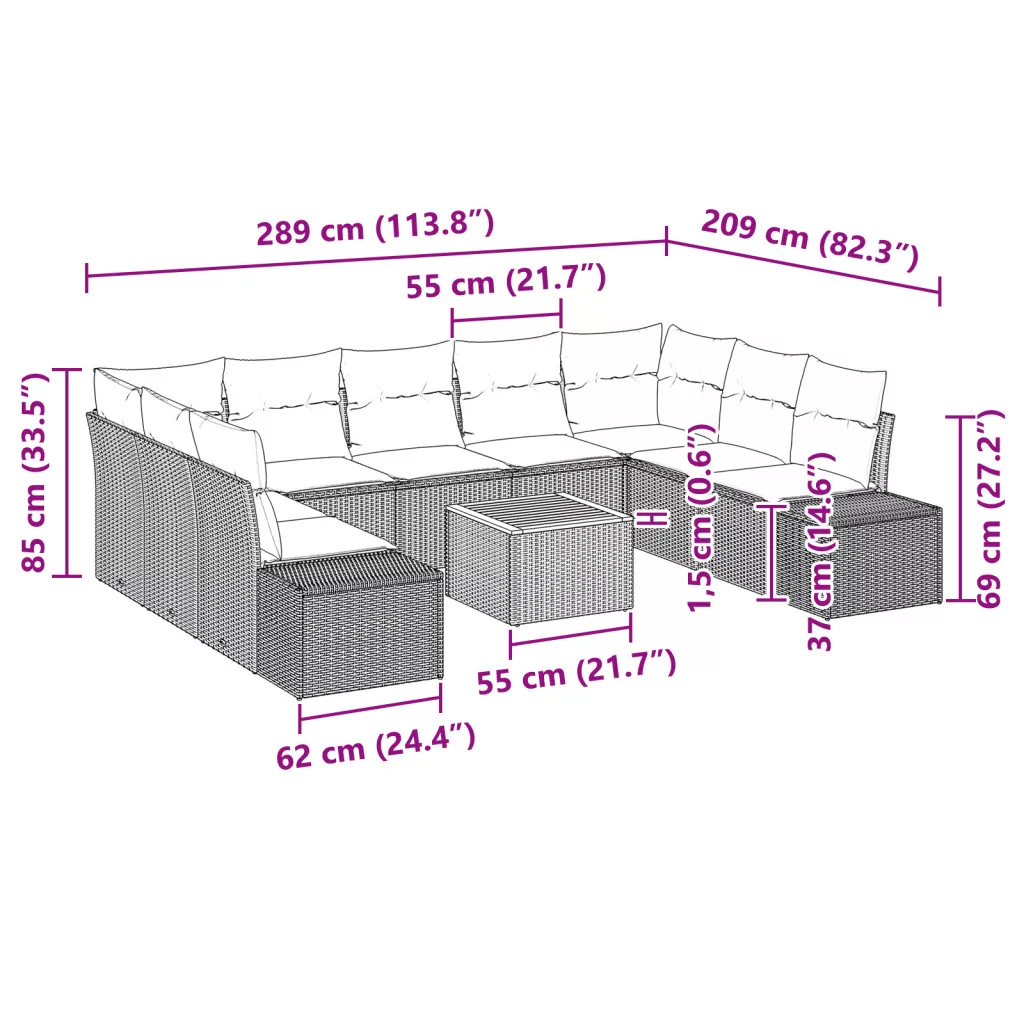 Szállítás tartalma: 5 x középső ülés tárolási funkcióval, 2 x sarok ülés tárolási funkcióval, 2 x kanapé tárolási funkcióval, 1 x kerti asztal