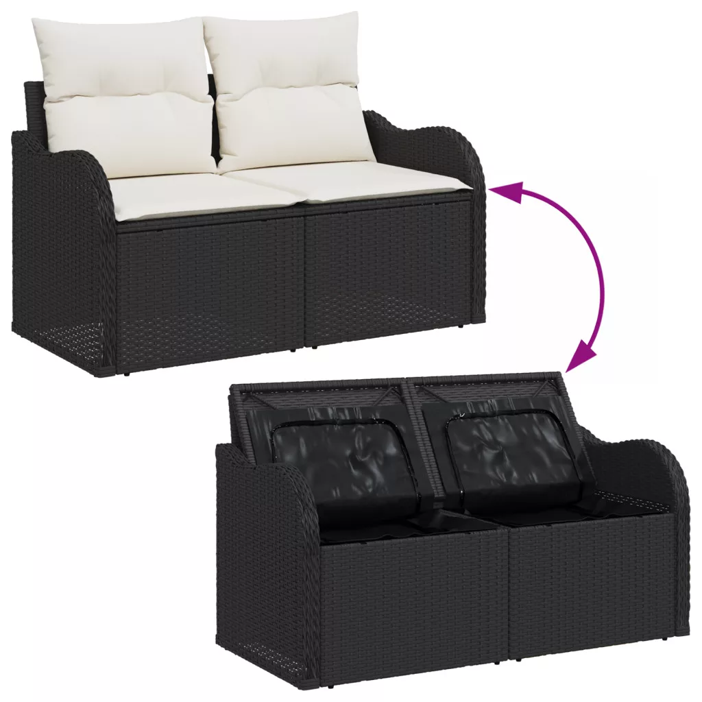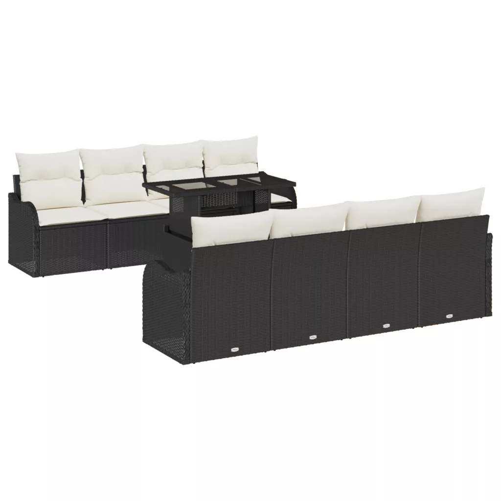 10 darabos kertivel ülőgarnitúra párnákkal, fekete poli rattan