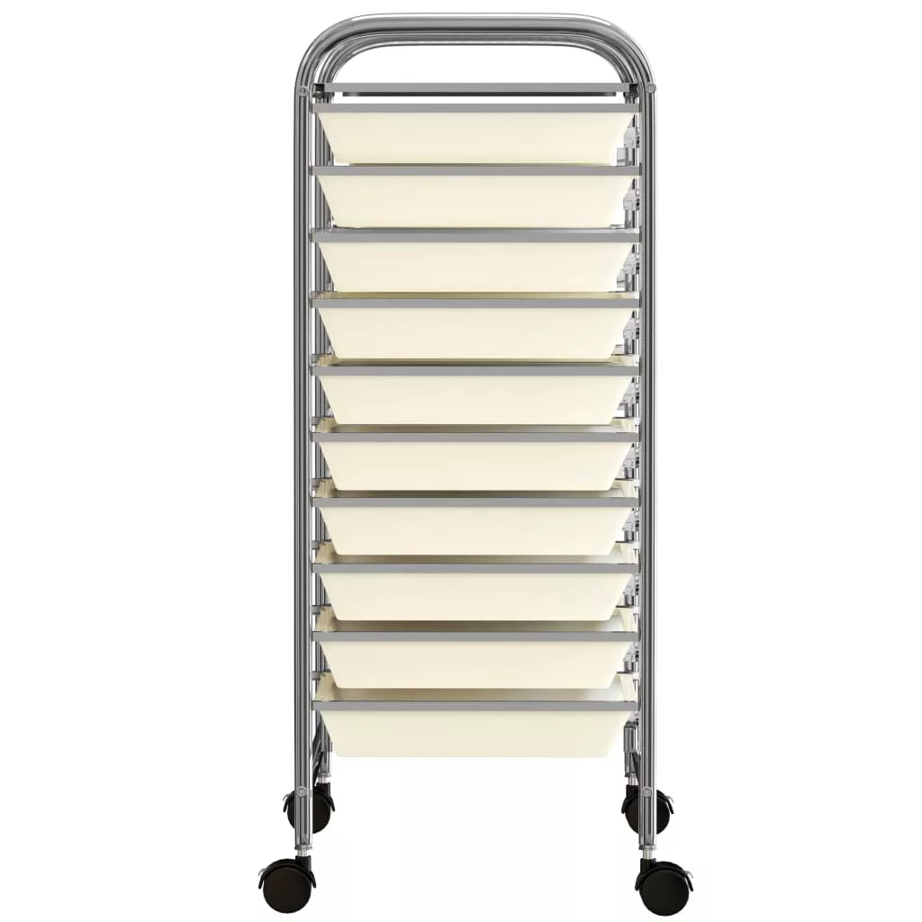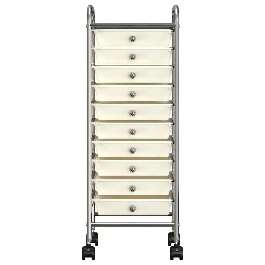 10 fiókos mozgatható fehér műanyag tárolókocsi