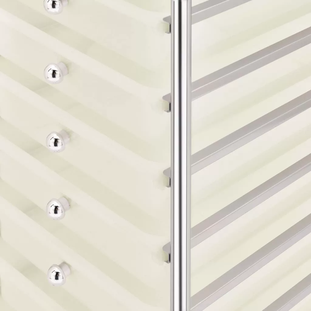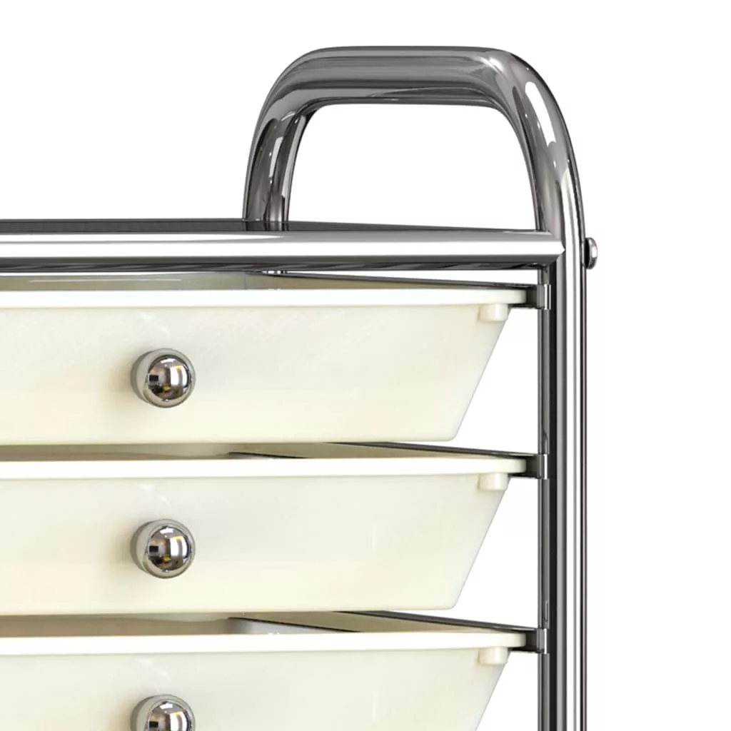 A fiókos kocsi kompakt és praktikus stílusával bőséges helyet kínál irodaszerei és szépészeti cikkei rendezett, elérhető közelségben történő tárolásához. A krómozott váz masszív és strapabíró támaszt kínál, a 10 kivehető kosár pedig elegendő hellyel szolgál holmijai számára. Könnyen kivehetők és tisztíthatók. 4 db bolygókerékkel is fel lett szerelv a könnyű szállítás és tárolás érdekében. Ez a tárolókocsi rövid idő alatt összeszerelhető.