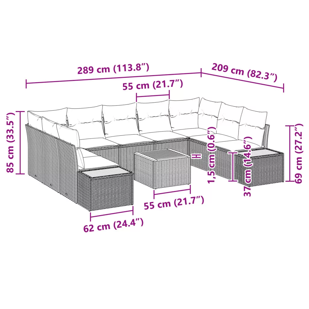10 részes kerti bútor szett párnákkal, szürke poli rattanból és akáciából