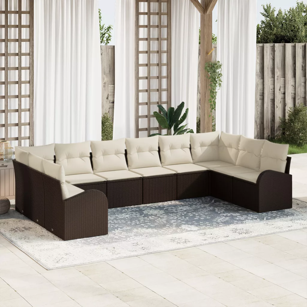 10 részes kerti szófagarnitúra párnákkal barna poli rattan