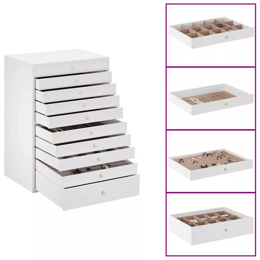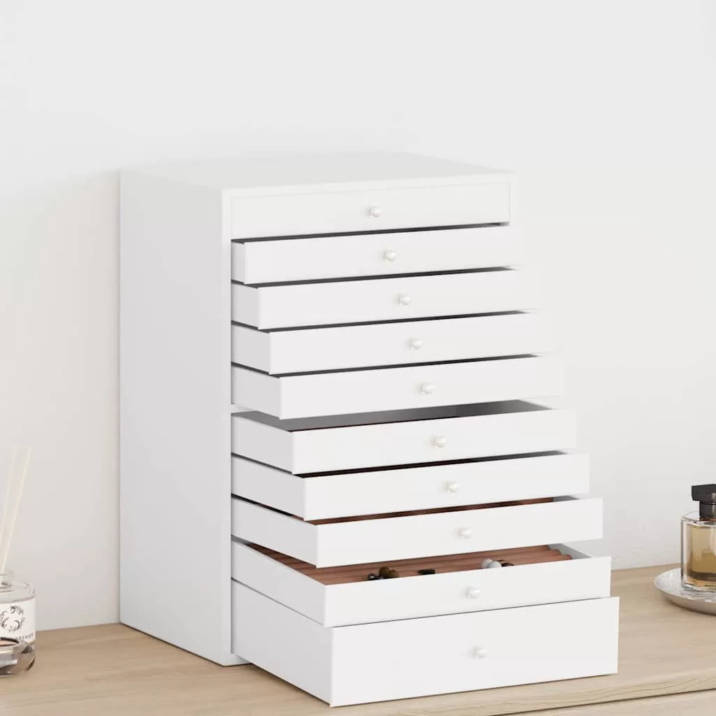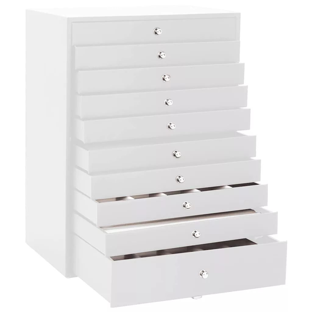 10 rétegű ékszerdoboz óratartókkal Fehér 29x20,5x40,5 cm