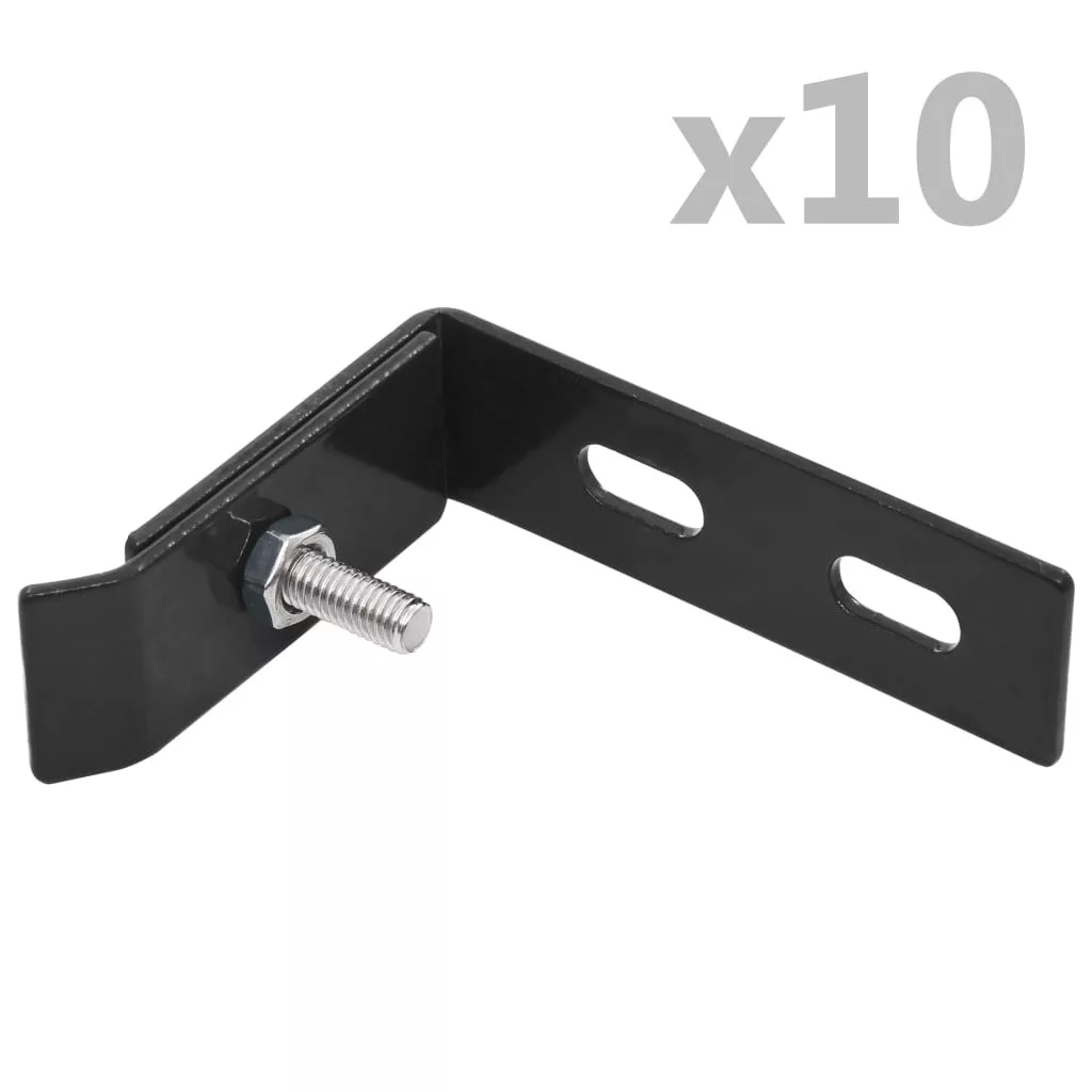 Csak a megfelelően rögzített kerítés biztonságos. Összekötő elemünkkel rácskerítését könnyedén és hatékonyan rögzítheti. Praktikus sarokösszekötő elemünk egy tűzihorganyzott elülső részt és egy alátétlapot tartalmaz, valamint egy tartós rozsdamentes acélcsavart és egy csavaranyát. A csomag 10 szettet tartalmaz.