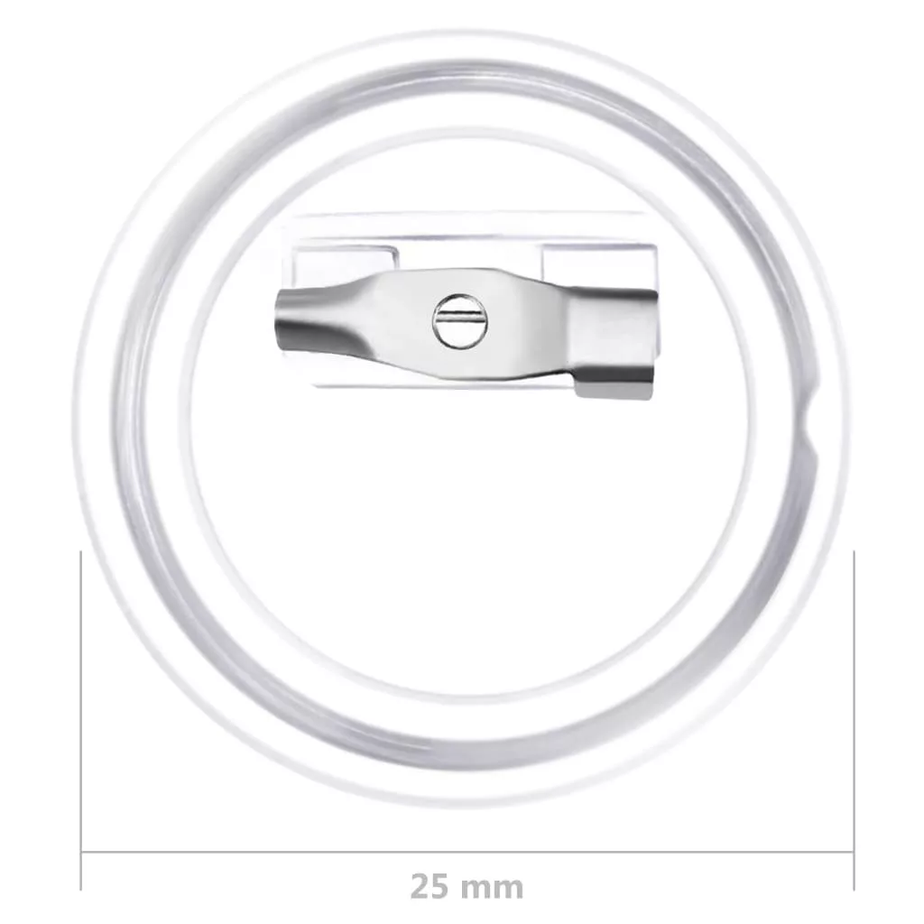 Készítsen átlátszó kerek kitűzőinkkel egy emléket barátainak és munkatársainak a kitűzőkészítő készletünkkel! Alkalmasak DIY- vagy, iskolai projektekhez, de születésnapi és esküvői ajándékként is szolgálhatnak. A szállítmány 100 készletet tartalmaz. A kitűzők átlátszó, erős akrilból készültek, kopásmentesek és tartósak. Nem szükséges a gombkészítő gép használata. Könnyen használható és pattintható, csak nyomja össze az elülső és a hátsó elemet, majd csípje össze körbe mindkét irányba, amíg rá nem pattan rendesen.