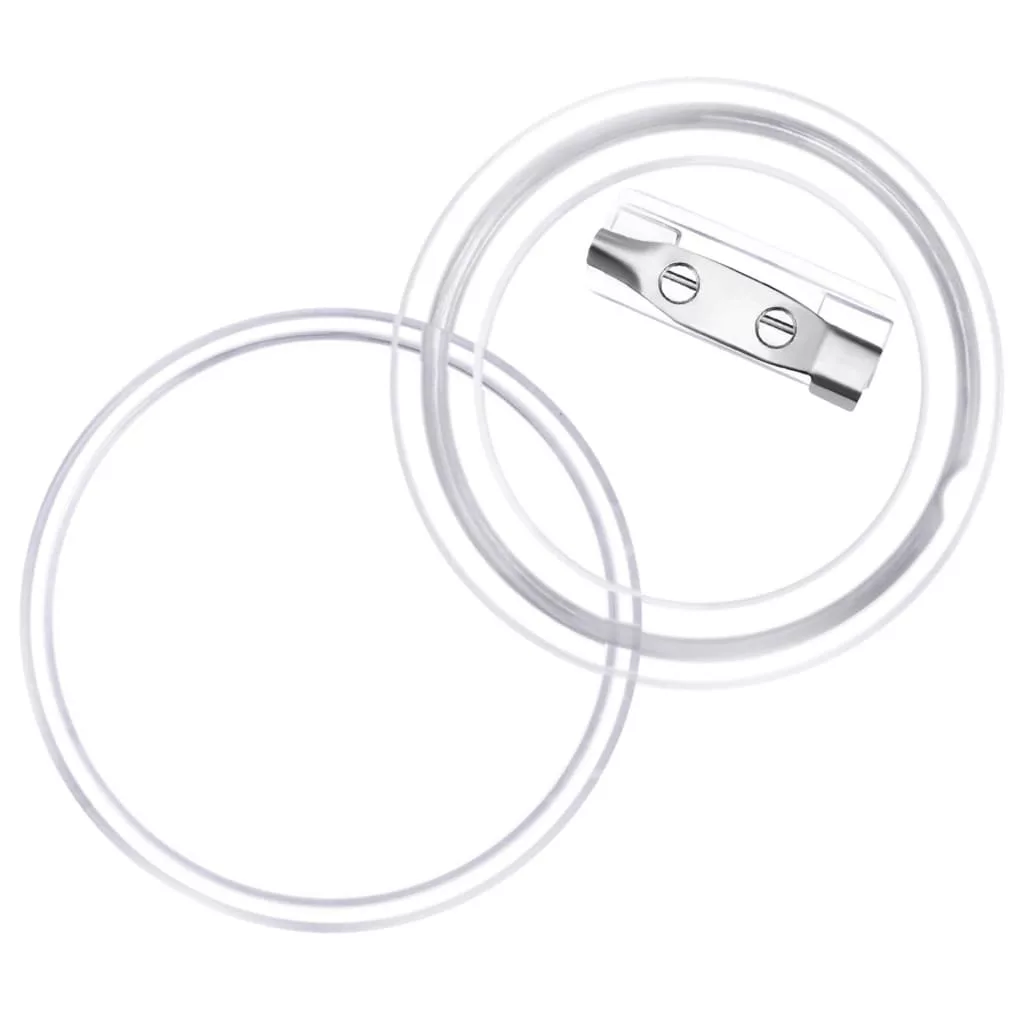 Készítsen átlátszó kerek kitűzőinkkel egy emléket barátainak és munkatársainak a kitűzőkészítő készletünkkel! Alkalmasak DIY- vagy, iskolai projektekhez, de születésnapi és esküvői ajándékként is szolgálhatnak. A szállítmány 100 készletet tartalmaz. A kitűzők átlátszó, erős akrilból készültek, kopásmentesek és tartósak. Nem szükséges a gombkészítő gép használata. Könnyen használható és pattintható, csak nyomja össze az elülső és a hátsó elemet, majd csípje össze körbe mindkét irányba, amíg rá nem pattan rendesen.