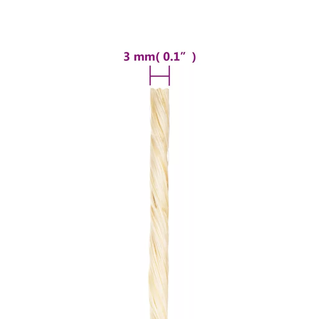Ez a 100%-ban természetes szizál kötél, nagy szakító- és kopásállóságával ideális háztartási használatra, valamint mezőgazdaságra, szállításra, horgászatra, hajózásra, tereprendezésre stb. is. Tartós anyag: 100%-ban természetes szizálból készült, a kötél szívós, jó szakító- és kopásállósággal rendelkezik. A kenderkötél emellett tartós és minden időjárási körülményre alkalmas.Széleskörű alkalmazás: Ez a szizálzsineg macskakaparó-oszlopok, -tornyok és kaparófák javítására vagy készítésére alkalmas. Emellett kertészkedéshez, otthoni díszítéshez, barkácskodáshoz, esküvői partikellékekhez stb. is használható.Könnyen használható és tárolható: A szizál zsinór nagyon kényelmesen használható. Szabadon a kívánt hosszra vághatja. Jól be van csomagolva és nem gabalyodik össze. Jó tudni:Ez a kötél nem alkalmas mászáshoz, emeléshez, árurakodáshoz, illetve hintázáshoz vagy hinta részeként való használathoz.