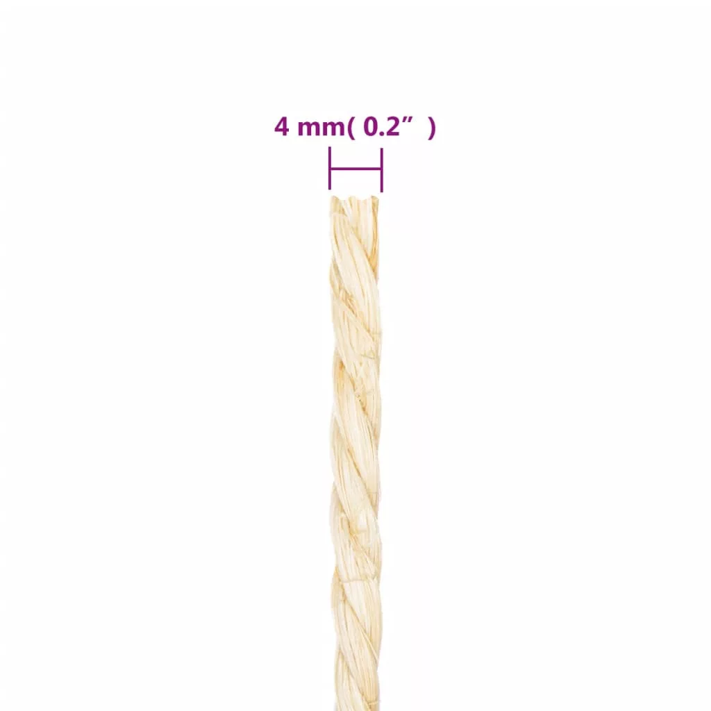 Ez a 100%-ban természetes szizál kötél, nagy szakító- és kopásállóságával ideális háztartási használatra, valamint mezőgazdaságra, szállításra, horgászatra, hajózásra, tereprendezésre stb. is. Tartós anyag: 100%-ban természetes szizálból készült, a kötél szívós, jó szakító- és kopásállósággal rendelkezik. A kenderkötél emellett tartós és minden időjárási körülményre alkalmas.Széleskörű alkalmazás: Ez a szizálzsineg macskakaparó-oszlopok, -tornyok és kaparófák javítására vagy készítésére alkalmas. Emellett kertészkedéshez, otthoni díszítéshez, barkácskodáshoz, esküvői partikellékekhez stb. is használható.Könnyen használható és tárolható: A szizál zsinór nagyon kényelmesen használható. Szabadon a kívánt hosszra vághatja. Jól be van csomagolva és nem gabalyodik össze. Jó tudni:Ez a kötél nem alkalmas mászáshoz, emeléshez, árurakodáshoz, illetve hintázáshoz vagy hinta részeként való használathoz.