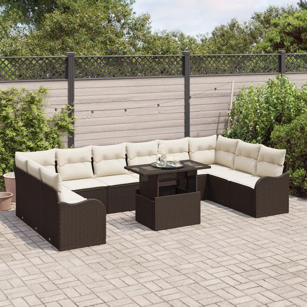 11 darabos kerti kanapé szett párnákkal Barna PE rattan