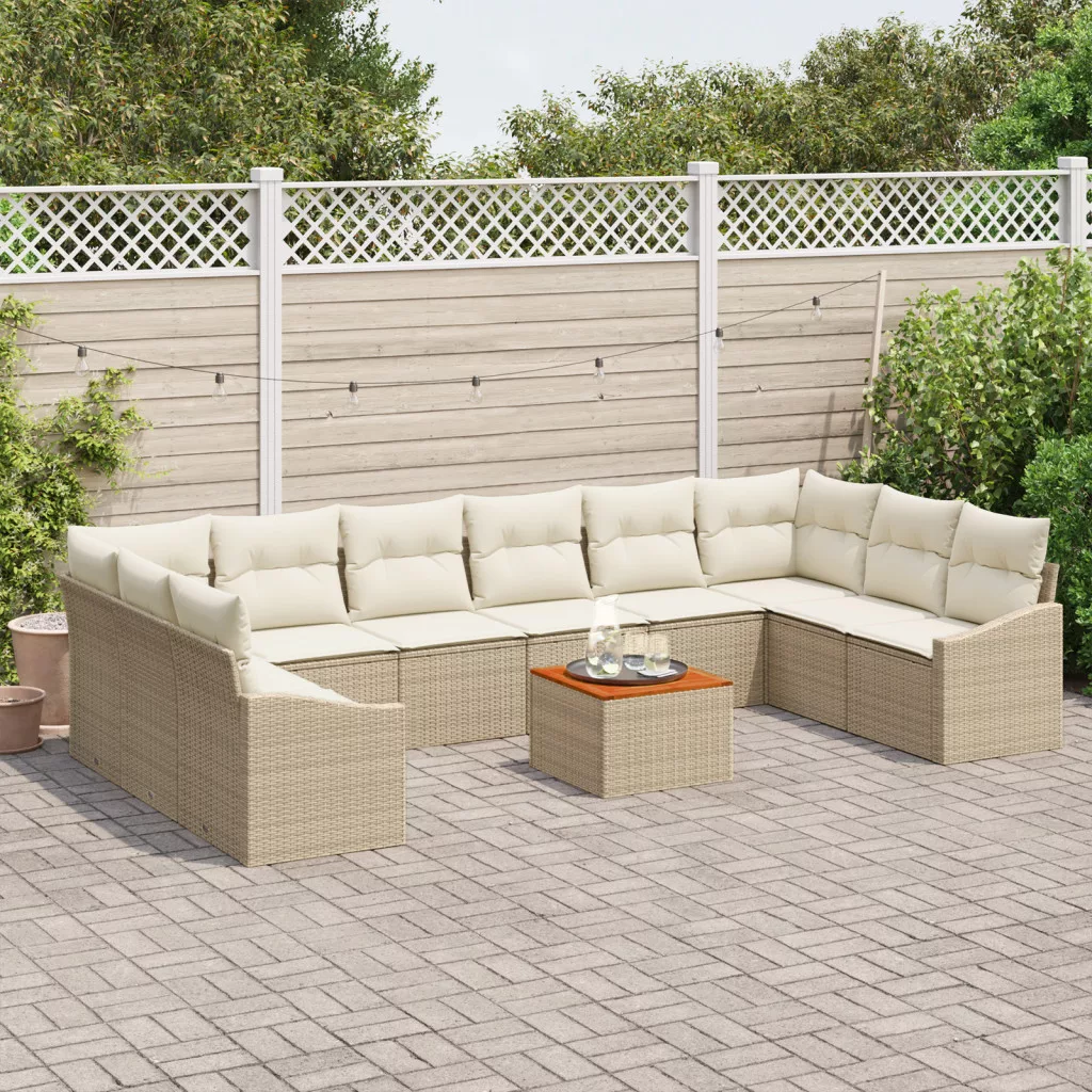 11 részes Kerti Kanapé Szett párnákkal Bézs Poly Rattan Akác
