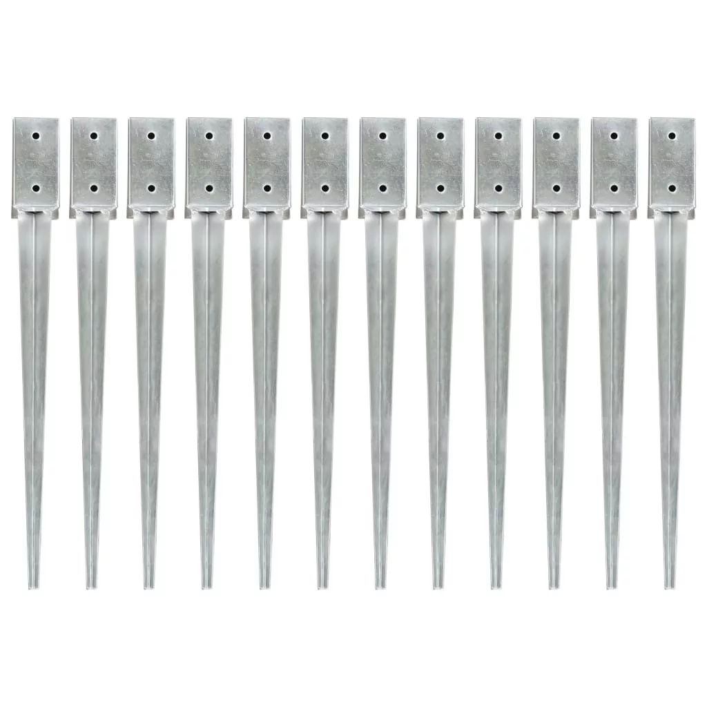 12 db ezüstszínű horganyzott acél kerítéstüske 7 x 7 x 75 cm