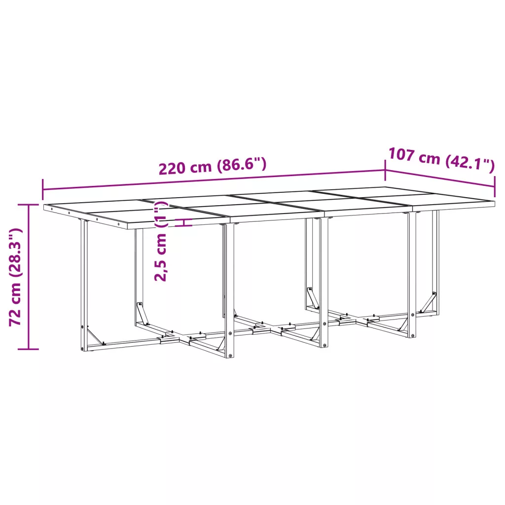 Ez a négyszögletes étkezőasztal székekkel szuper stílust ad bármilyen kültéri helyszínnek, ami a modern design-t praktikus megoldásokkal ötvözi. Erős kerete és fekete porszórt felülete miatt ez az étkező szett tökéletes kerti partikhoz, teraszi összejövetelekhez vagy kültéri vacsorákhoz. Kényelmes étkezésekhez és nagy bulihoz is ideális. Tartós anyagok: Porszórt acélból és műanyagból készült, ez az étkező szett az időjárást bírja, így sokáig kitart és alig kell karbantartani. Bőséges ülőhely: 12 fős kapacitásával ez a szett tökéletes családi étkezésekhez, vendégek fogadásához vagy kültéri eseményekhez, így mindenkinek kínál bőséges helyet. Modern esztétika: A letisztult vonalak és matt fekete felület kortárs look-ot ad, ami jól illik különböző kültéri környezetekhez. Könnyen tisztítható: A sima felületnek csak egy nedves rongyra van szüksége, így élvezheted a kültéri teret anélkül, hogy a karbantartás miatt stresszelj. Teljes szett: 1 nagy étkezőasztallal és 4 székkel érkezik, így mindent megkapsz egy szuper kültéri étkezési élményhez.