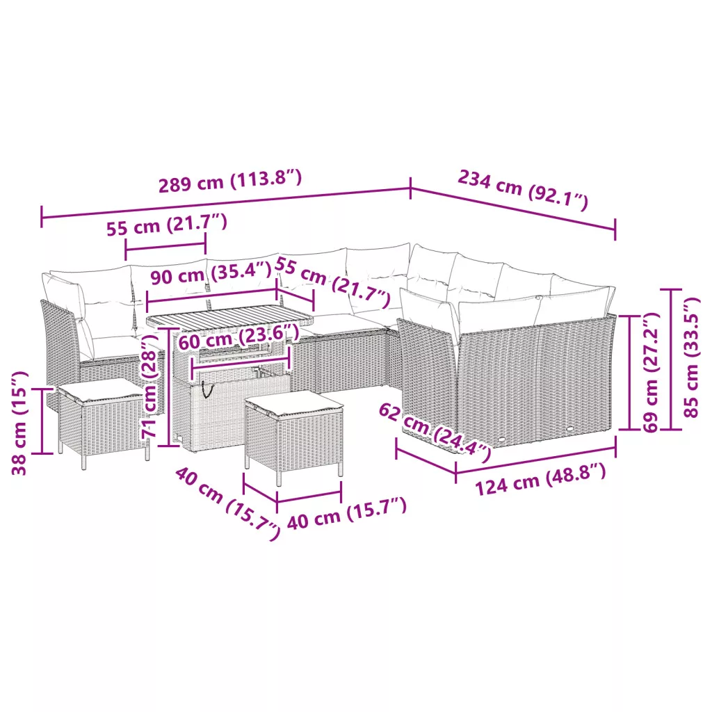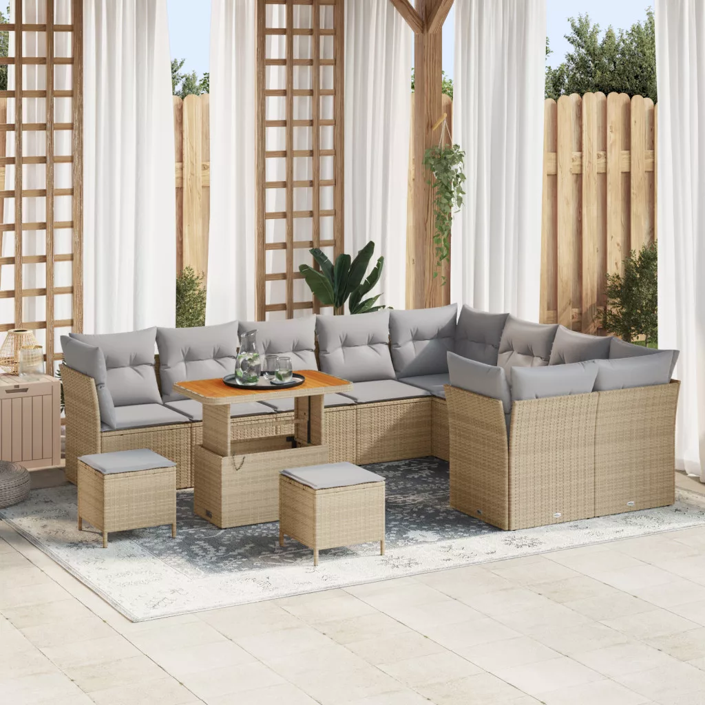 12 részes kerti kanapé szett párnákkal bézs poli rattan akáccal
