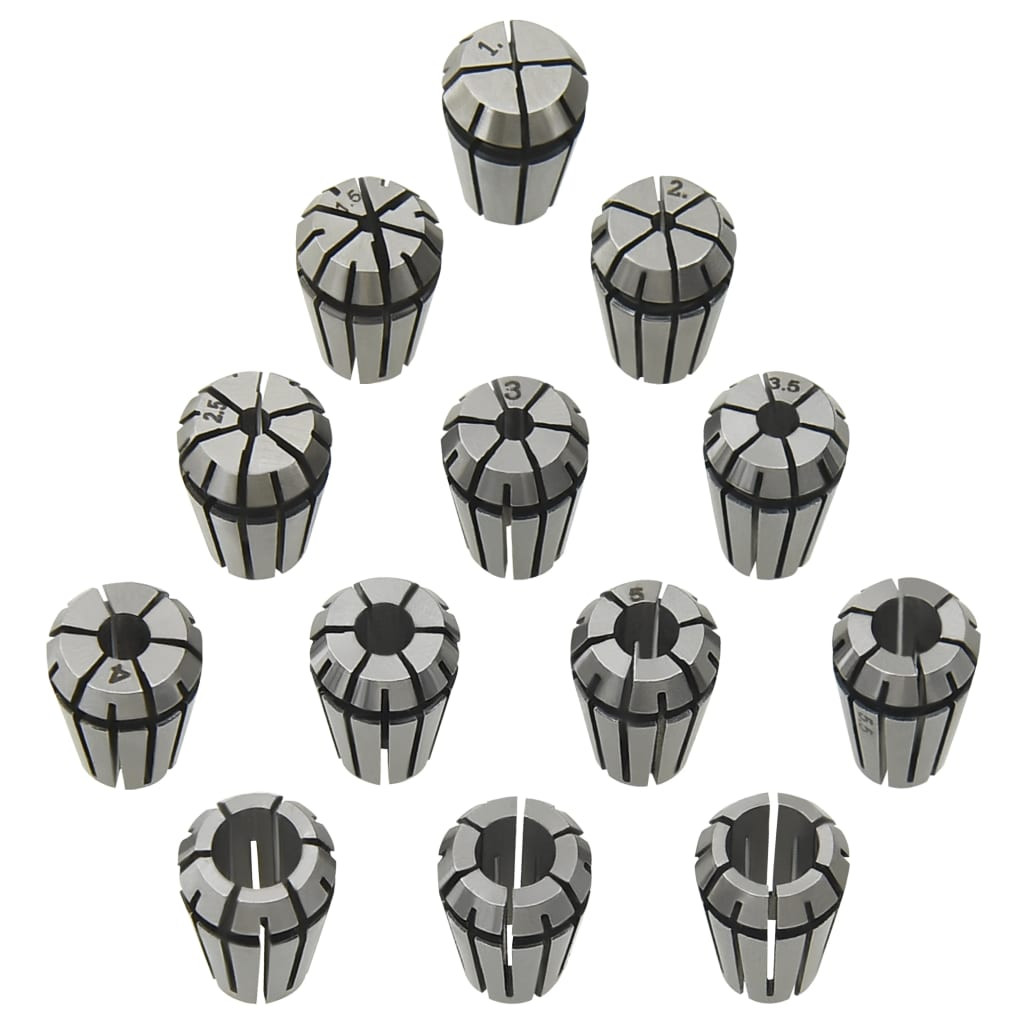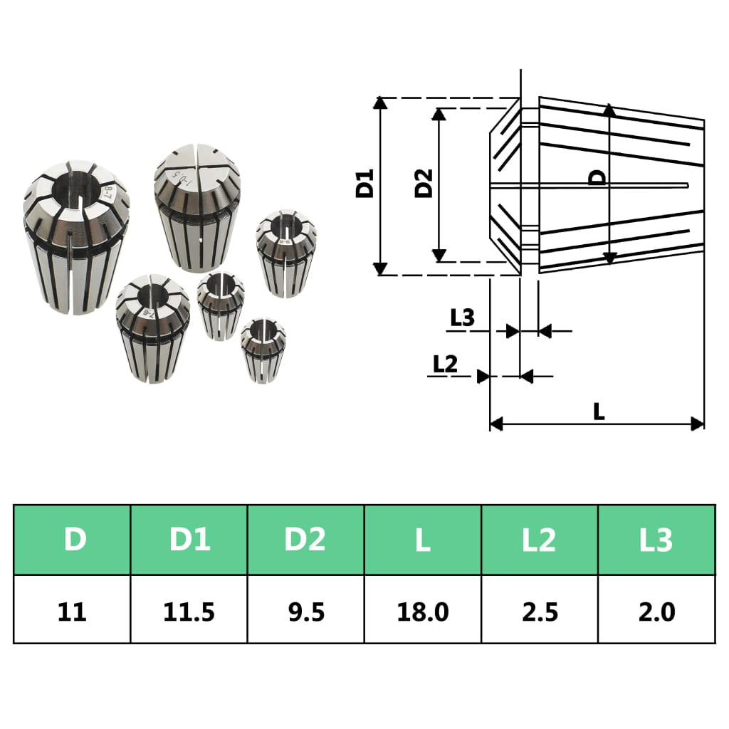 Ez a 13 darab ER11 befogógyűrű használható fúráshoz, maráshoz, menetvágáshoz, gravírozáshoz, CNC-hez, orsós szerszámgéphez stb. A szett befogási tartománya 1 mm és 7 mm között van. Ezek a kiváló minőségű acélból készült befogógyűrűk stabilak és praktikusak. Nagy pontossággal, jó rugalmassággal és ütésállósággal működnek. A szett önkioldó kialakítású, így az eszközök nem ragadnak be a tartóba. Minden gyűrű címkével ellátott külön védőtartóba van csomagolva. Emellett mindegyik gyűrűn jelölve van a mérete, így könnyű beazonosítani őket.