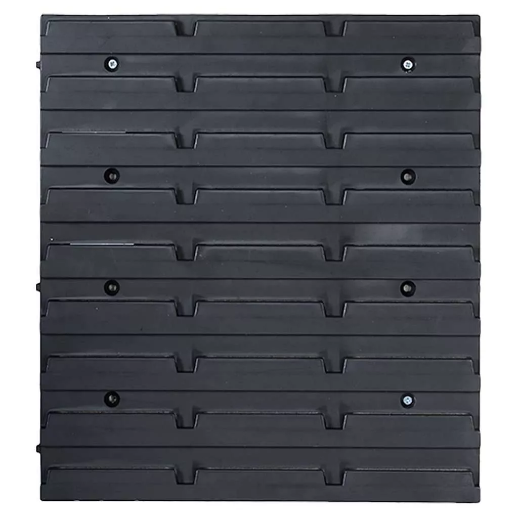 Tartson rendet garázsában, műhelyében vagy alkotóműhelyében ezzel a falra erősíthető tárolókészlettel. Az egymásra helyezhető dobozokkal ellátott funkcionális állvány számos tárolási lehetőséget kínál az olyan apró tárgyak számára, mint a csavarok, szögek, anyák, foglalatok, szerelvények stb. A 8 tömör falpanel különböző rögzítő tartozékokat és 60 felcímkézhető dobozt tartalmaz, hogy az összes kis alkatrész jobban áttekinthető legyen. A tárolódobozokat egyenként kiveheti és egymásra rakhatja. Az állványkészlet bővíthető és könnyen felszerelhető a garázs vagy a sufni falára. Ez a tárolórekesz-készlet minden igényének megfelelően rendezhető.