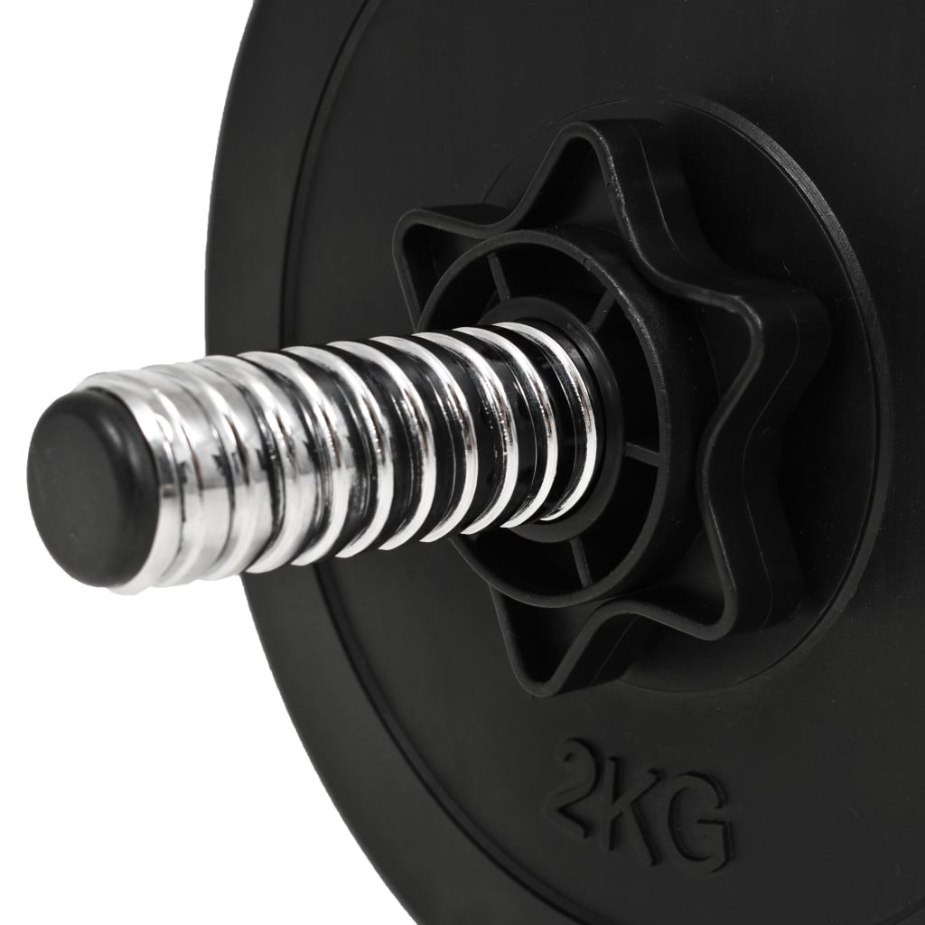Ez a sokoldalú egykezes súlyzókészlet tökéletes a mellkasra, a bicepszre, a karokra, a tricepszre és a hátizmokra való edzéshez. Többféle súlyozási lehetőség: Négy 2,5 kg-os tárcsát, négy 2 kg-os tárcsát és két 0,55 kg-os bilinccsel ellátott, menetes súlyzórudat tartalmaz, össztömege körülbelül 20 kg. Ez a készlet lehetővé teszi a felhasználók számára, hogy különböző gyakorlatokhoz változó súlyokat válasszanak. Erős és tartós: Ezek a tárcsák robusztus műanyaggal bevont cementből készültek, és a mellékelt csillagzárakkal könnyen a rúdhoz rögzíthetők. Átgondolt kialakítás: A súly egyértelműen meg van jelenítve minden tárcsán a gyors és egyszerű azonosítás érdekében. A súlyzórudak csúszásmentes műanyag markolattal rendelkeznek.
