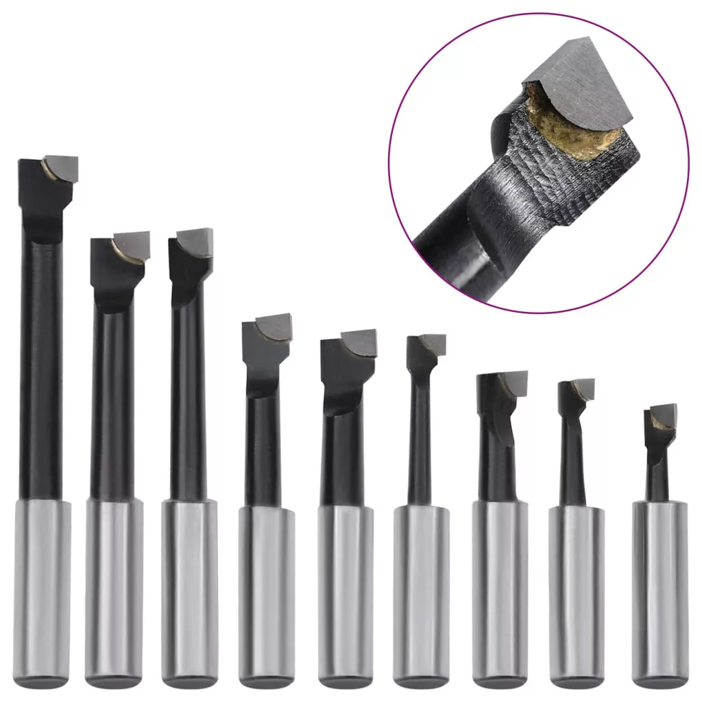 Ez a szerszámkészlet a fúrógépekkel és a CNC marógépekkel, például fúrógéppel, vízszintes fúrógéppel vagy hagyományos fúrógéppel történő munka fő tartozéka. A készlet többek között hengeres fúráshoz, kis hornyok, lépcsőzetes furatok, furatvégi felületek megmunkálására, illetve belső furat és gyűrűhorony kivágására használható. Ez a fúrókészlet kiváló keménységű, minőségi acélból készült a stabil teljesítmény érdekében. A szett 9 db különböző méretű, könnyen kezelhető és cserélhető 12 mm-es furatvágót, valamint fúrófejet, fúrószárat és villáskulcsokat tartalmaz, hogy megfeleljen a különböző igényeknek. A szállítmány az egyszerű tárolás és a kényelmes hordozás érdekében egy dobozt is tartalmaz.