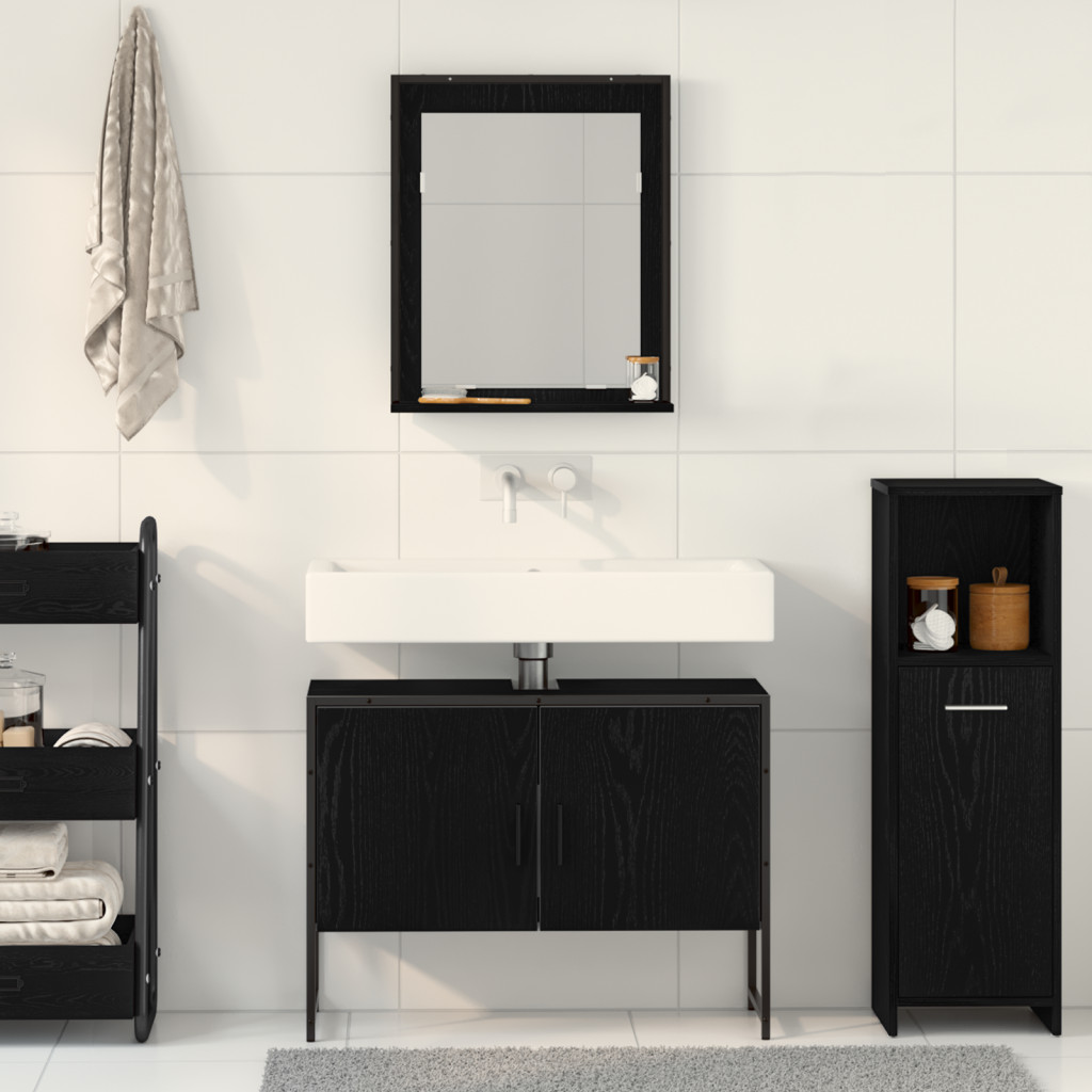 2 Darabos Fürdőszoba Bútor Szett Fekete Tölgy Műanyag Fa