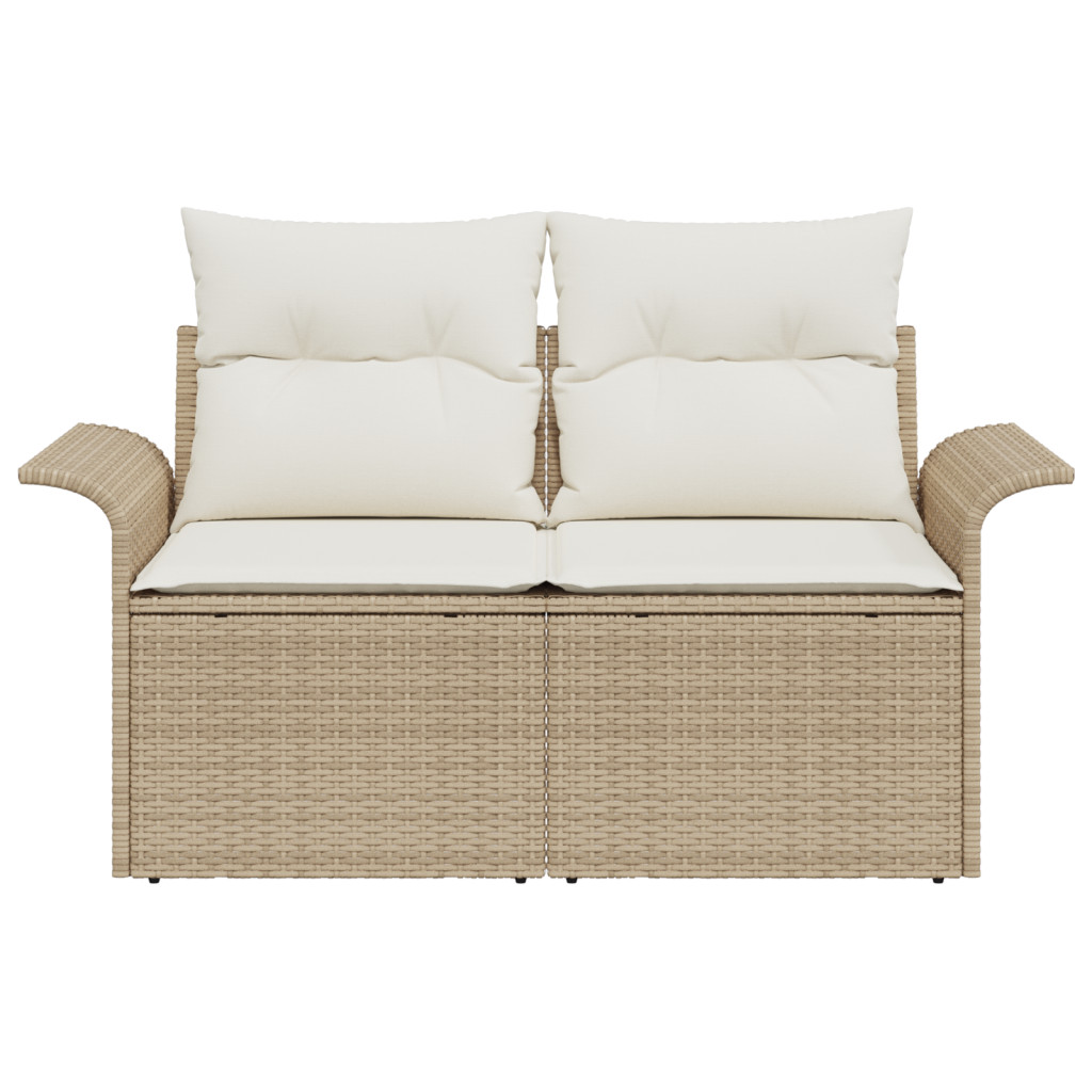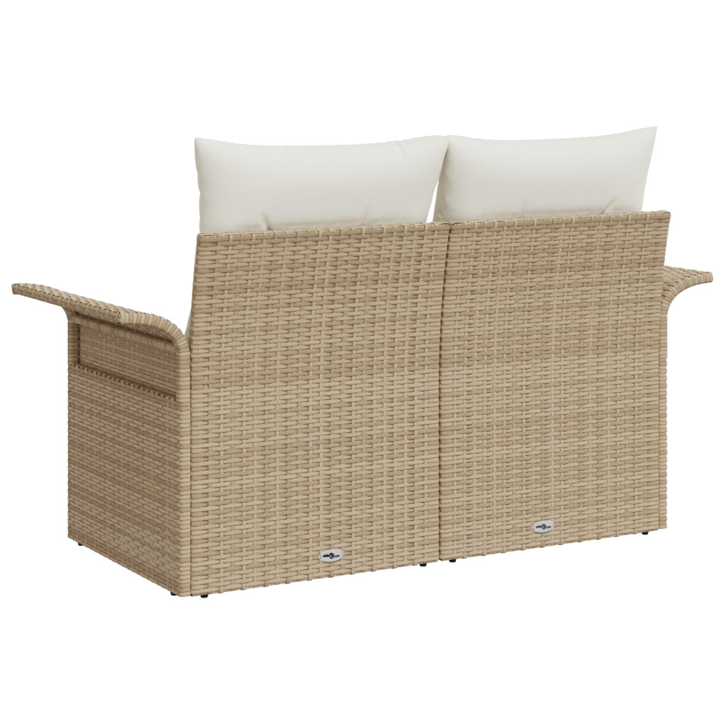 2 Személyes Kerti Kanapé Párnákkal Bézs Poli Rattan