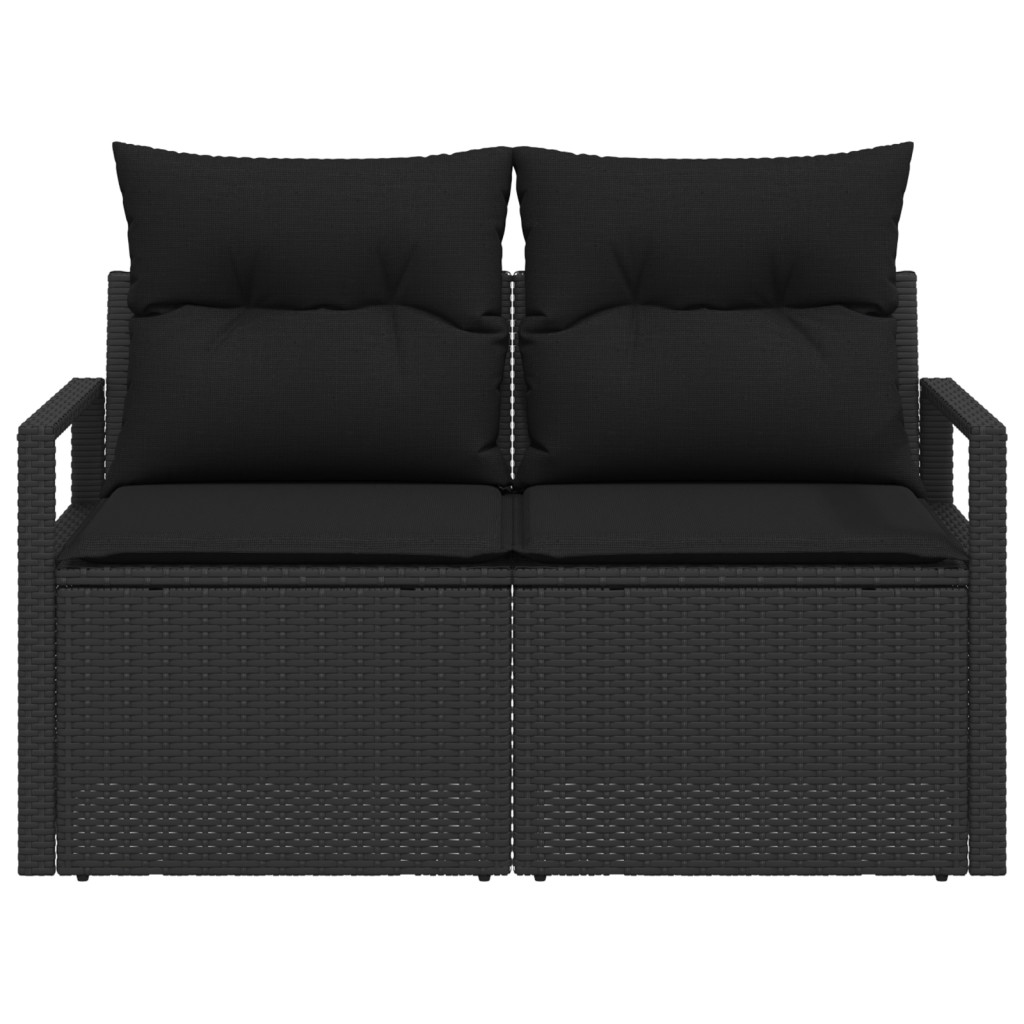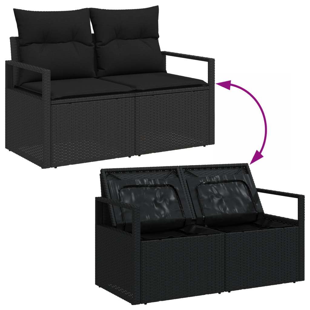 2-Személyes Kerti Kanapé Tárolóval és Párnákkal Fekete Poli Rattan