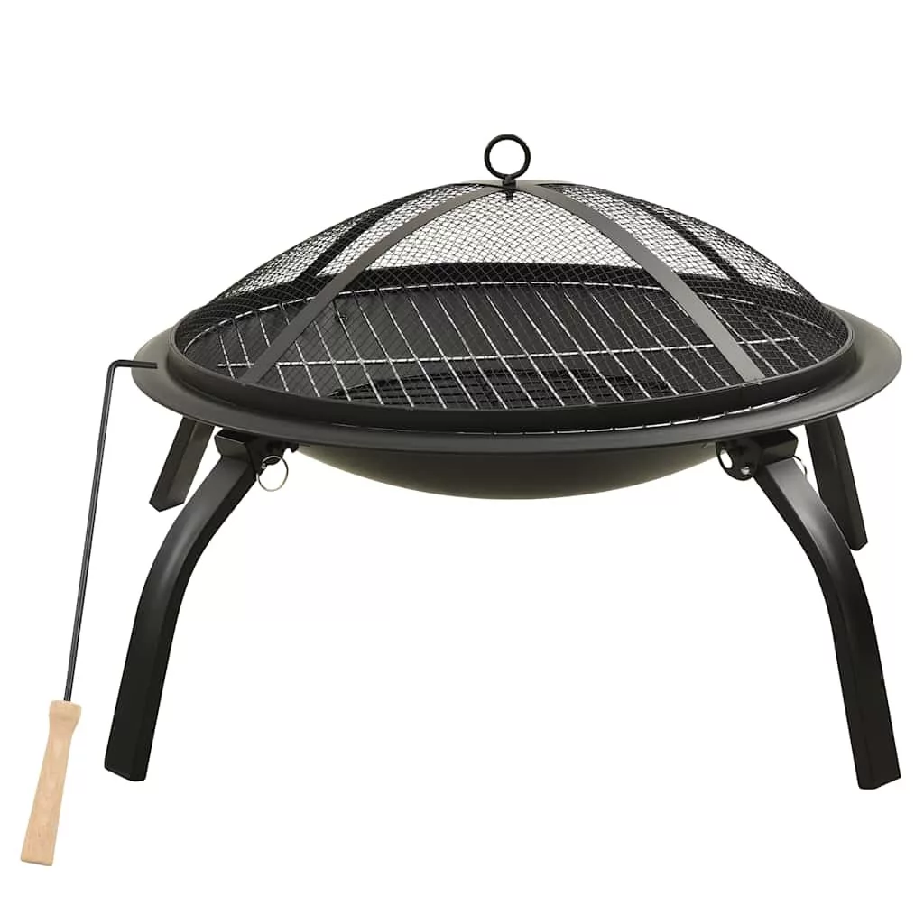 Gyors és egyszerű módja annak, hogy felmelegedjen, és feldobja a szabadtéri lakomát! Vigye haza ezt a 2 az 1-ben tűztálat most! Az acélból készült tűztál kiválóan nyeli el és sugározza a hőt. A méretes, illetve mély tálnak köszönhetően nagy tűz rakható a tűztálban, amit órákig élvezhet családjával. A háló lehetővé teszi az égő tűz megfigyelését, elzárja a tüzet a biztonság érdekében, és megakadályozza a szikrák és a törmelék kirepülését. Emellett a hálós fedélben található kényelmes gyűrűvel könnyen hordozható. A mellékelt fém piszkavassal a hálós fedelet is leveheti, és a rönköket is átrendezheti. A mellékelt főzőrács segítségével akár grillezhet is. Emellett a lábak a könnyű szállítás érdekében becsukhatóak. Fontos megjegyzések: Csak kültéren használható. A sérülések és az égési sérülések elkerülése érdekében ne érjen a termékhez, ha égő fa van benne, vagy ha nemrég oltotta el benne a tüzet. FIGYELEM: Ne használjon szeszt vagy benzint a be- vagy újragyújtáshoz! FIGYELEM! Ne használja beltérben! Tartsa távol a gyermekeket és a háziállatokat.