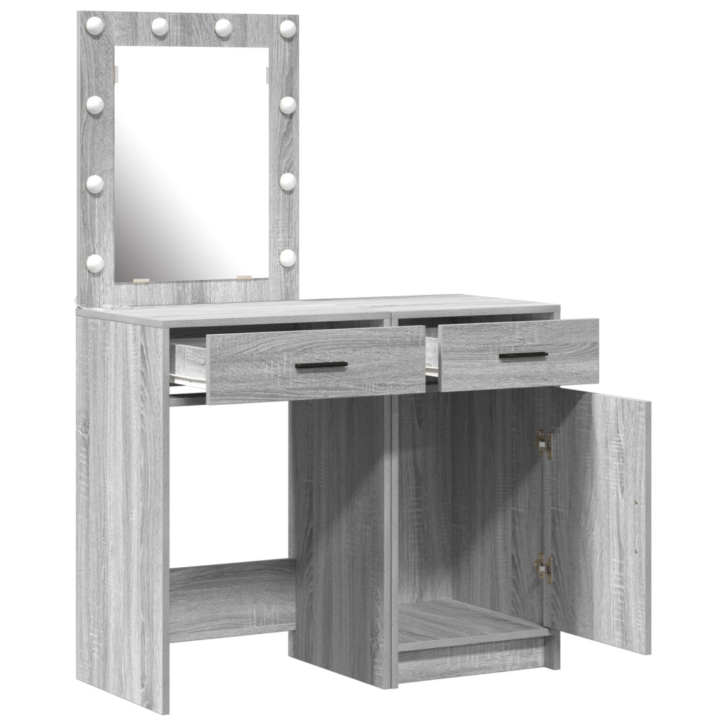2 darabos Öltöztető Asztal Szett LED-del Szürke Sonoma Szerelt Fából