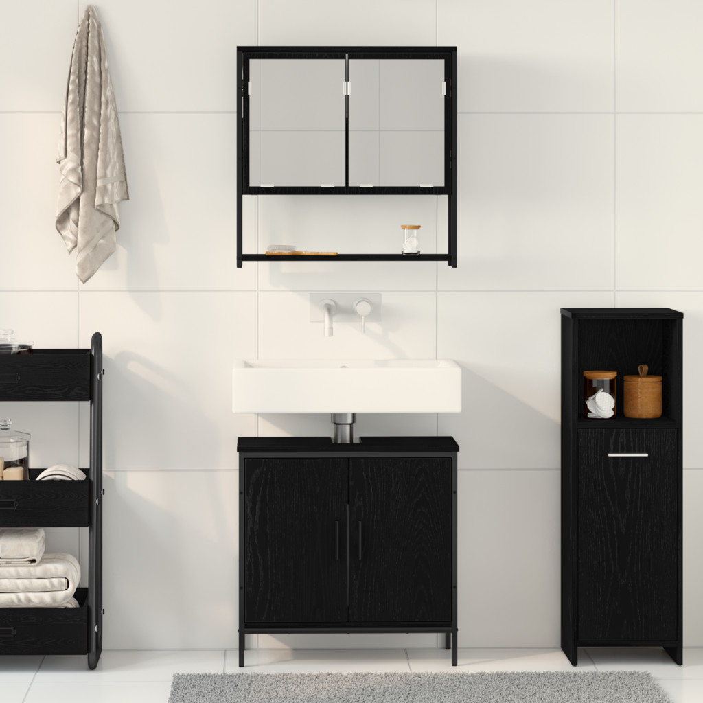 2 darabos fürdőszoba bútor szett fekete tölgy színezett fa