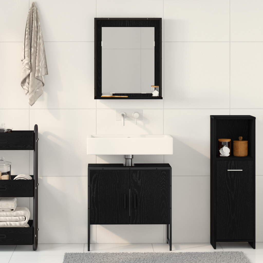 2 darabos fürdőszoba szekrény szett fekete tölgy ágynemű