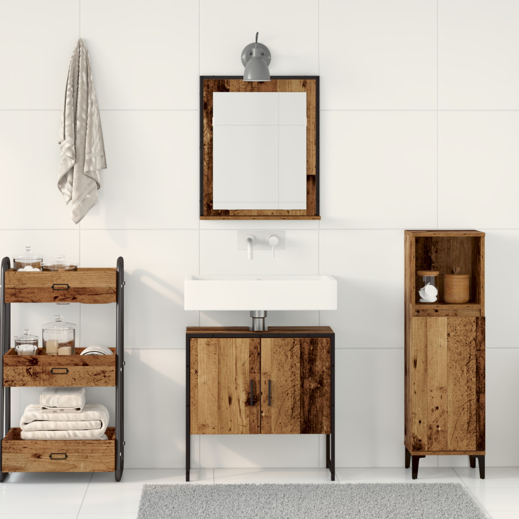 2 darabos fürdőszobaszekrény készlet öreg fa hatású mérnöki fa