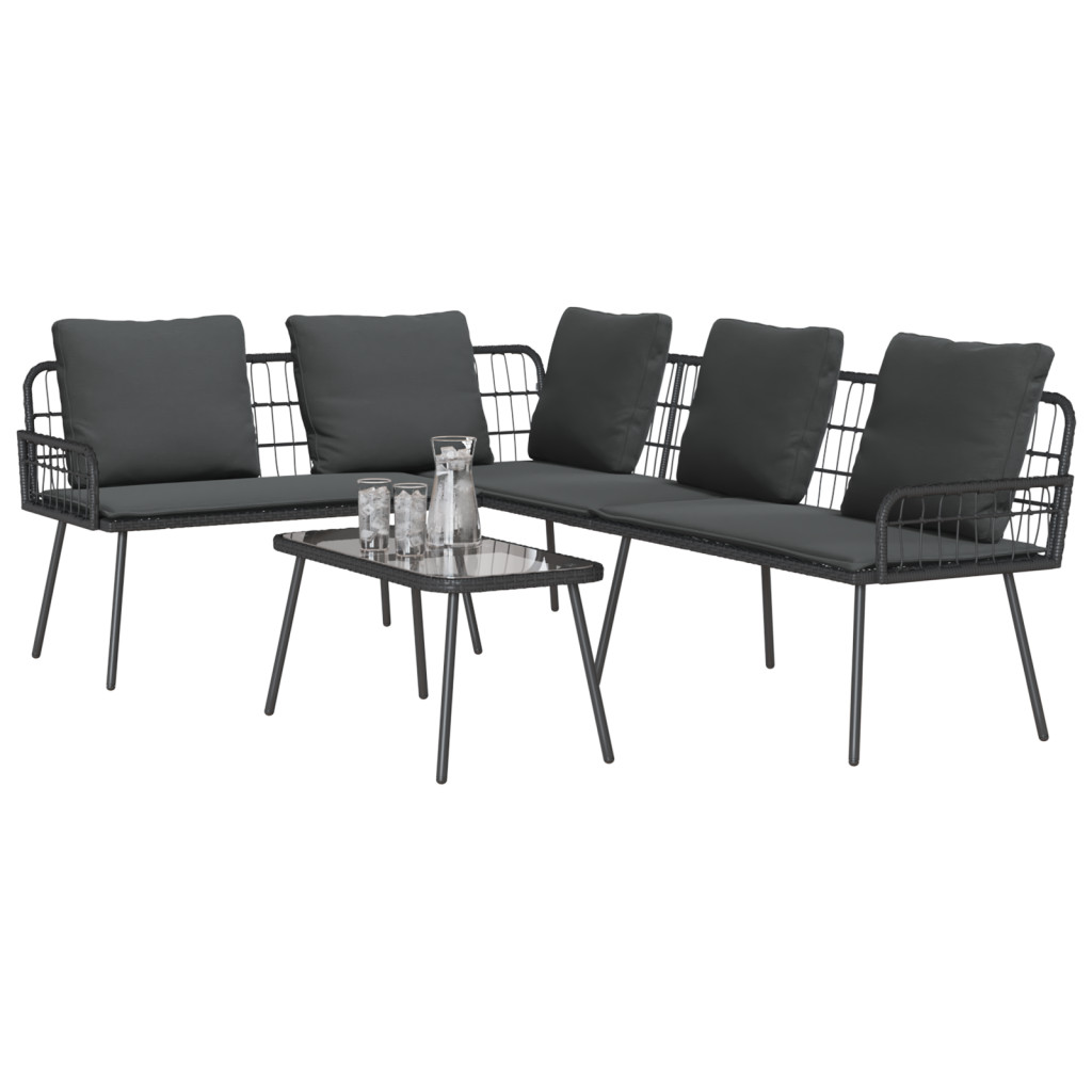 2 darabos kertiszekrénysor párnákkal fekete polyrattán