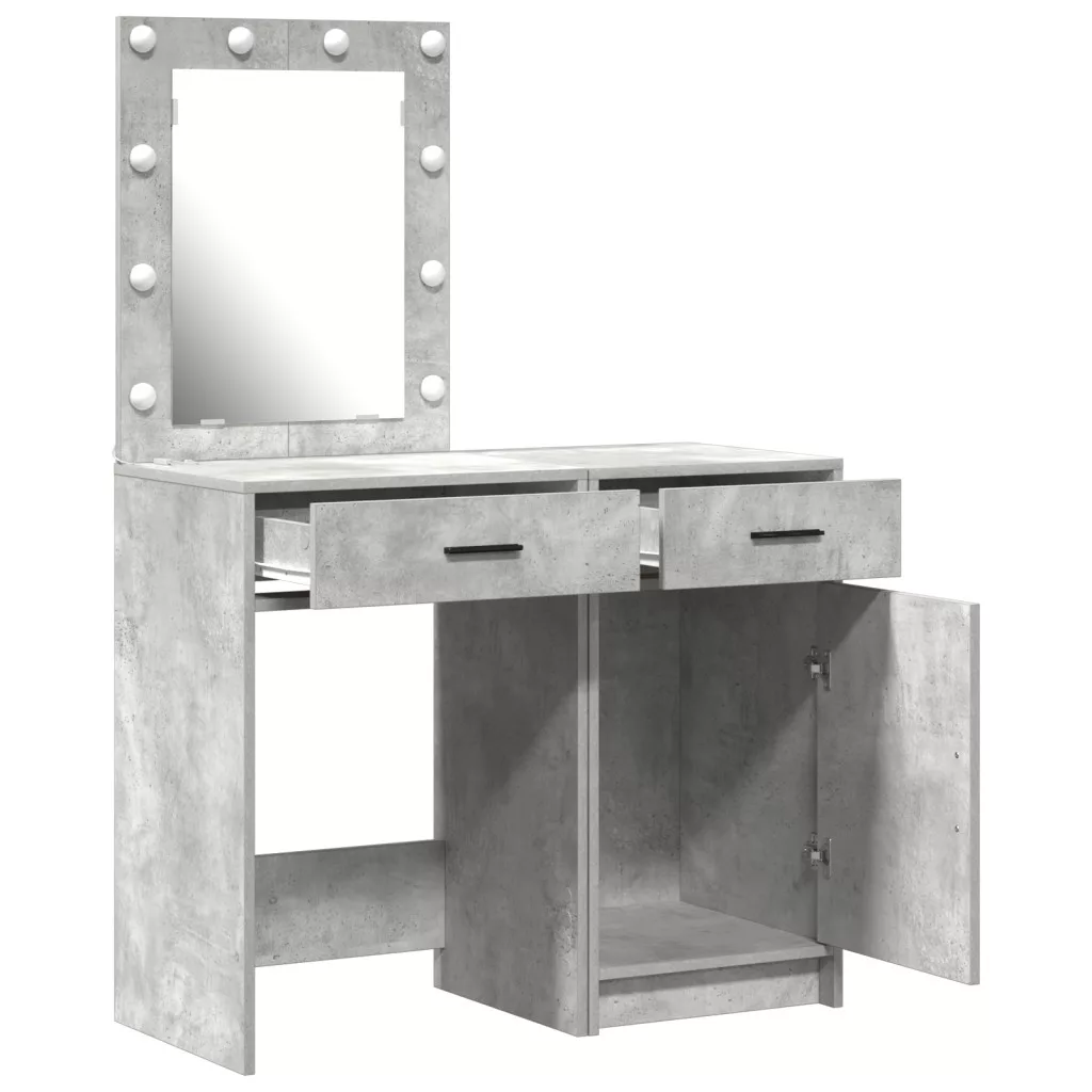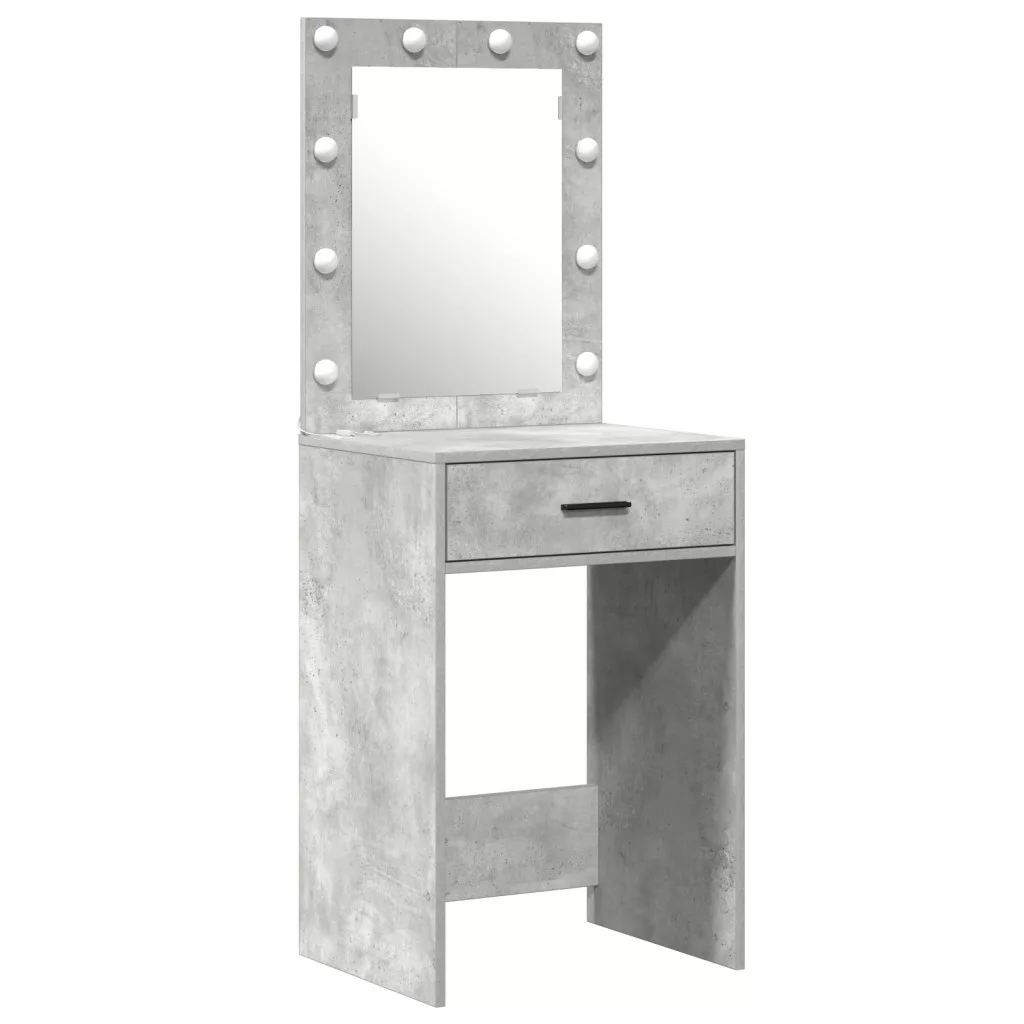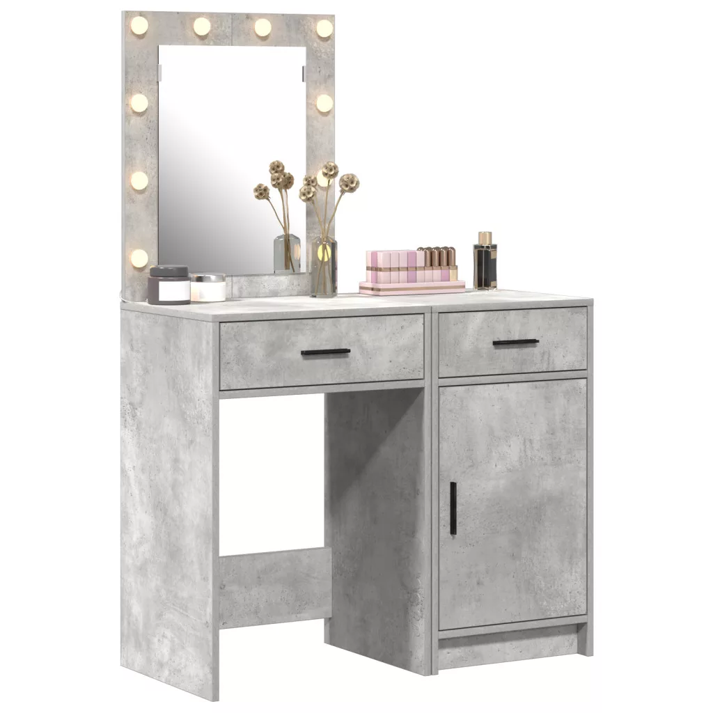 2 darabos öltöztetőasztal szett LED-del, beton szürke, mérnökelt fa