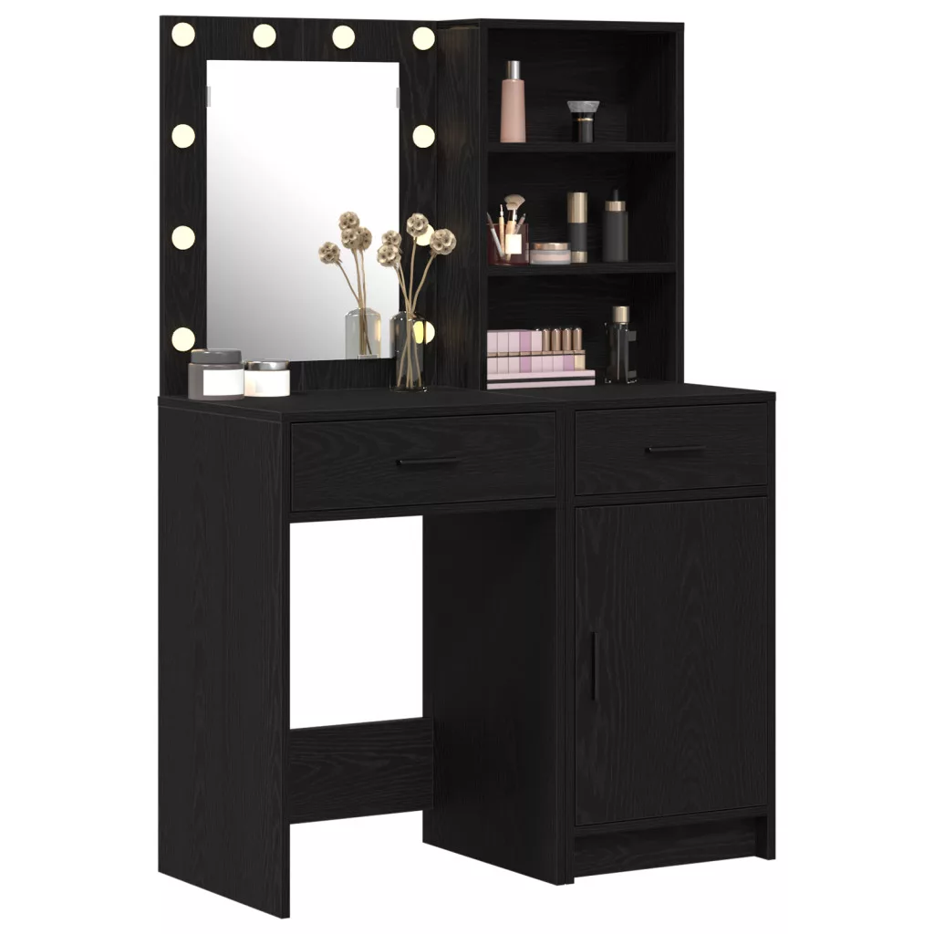 2 darabos öltöztetőasztal szett LED-del, fekete, mérnöki fa