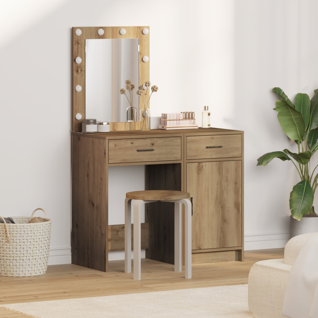 Ez a pipereasztal szett masszív szerelt fából készült, és gyönyörűen mutat bármilyen hálószobában. Az artisan tölgy árnyalata melegséget és bájt ad a helységhez, így kifejezetten stílusos és praktikus kiegészítővé válik. Beépített világítás: A pipereasztal beépített LED világítással van felszerelve, Hollywood stílusban, minden alkalommal megadva a tökéletes fényt a sminkhez. Bőséges tárolás: Tágas fiókkal és szekrénnyel rendelkezik, így rengeteg helyet biztosít a szépségápolási apróságaidnak, segítve ezzel a rendezettebb teret. Csinos modern dizájn: Az artisan tölgy külseje jól illeszkedik a modern dekorációhoz, különböző belső terekhez igazodva. Változatos felhasználás: Tökéletes szépségápolásra vagy sminkelésre, ez a szett bármely felnőtt felhasználónak szól, feldobva a szépségápolási rutinodat. Minőségi kivitelezés: Szerelt fából készült, így tartósságot és stabilitást ígér, évekig kielégítve a szépségápolási igényeidet. Kérjük, vegye figyelembe, hogy csak tanúsított DC 5V bemenetet használjon. A magasabb feszültség túlmelegedést okozhat, és károsíthatja a készüléket, valamint túlhevülés és tűz kockázatát jelentheti. Ne csatlakoztassa ezt a terméket semmilyen más tápegységhez, mint amit a kézikönyvben, a névtáblán vagy a vidaXL kifejezetten ajánlott. Ezt a készüléket nem használhatják 14 évesnél fiatalabb gyermekek, valamint csökkent fizikai, érzékszervi vagy mentális képességekkel rendelkező személyek, vagy elektronikai eszközök használatában tapasztalatlan vagy tudás nélküli személyek. Az elektromosság veszélyes. A nem megfelelő telepítés, használat vagy módosítás (egyedi alkatrészek cseréje) a készülék károsodásához vezethet, áramütést és veszélyt okozva a felhasználónak. Ne működtesse ezt a terméket robbanásveszélyes atmoszférában, például gyúlékony folyadékok, gázok és por jelenlétében, vagy 50 Celsius foknál magasabb hőmérsékleten. Ne kapcsolja be a terméket, ha a csatlakozó kábel vagy tápegység láthatóan sérült. Ha a lámpa külső hajlékony kábele vagy vezetékje sérült, azt kizárólag a gyártó vagy annak szervizügynöke, illetve hasonló képesítéssel rendelkező személy cserélheti ki, hogy elkerülje a veszélyt. A telepítés és karbantartás alatt kapcsolja ki az áramot. Győződjön meg arról, hogy a fényforrások lehűltek. Ennek a lámpatestnek a fényforrása nem cserélhető; ha a fényforrás elérte élettartamának végét, az egész lámpát ki kell cserélni. Csak belső használatra, ne használja kültéren.