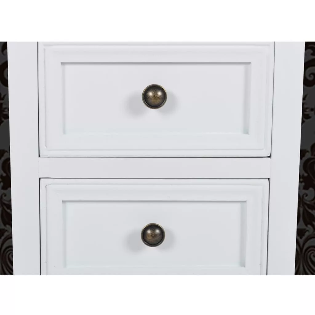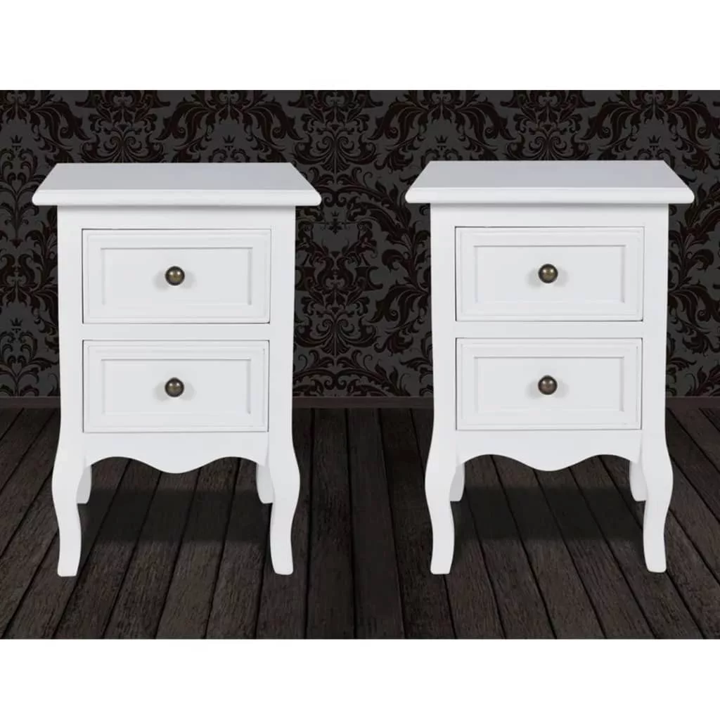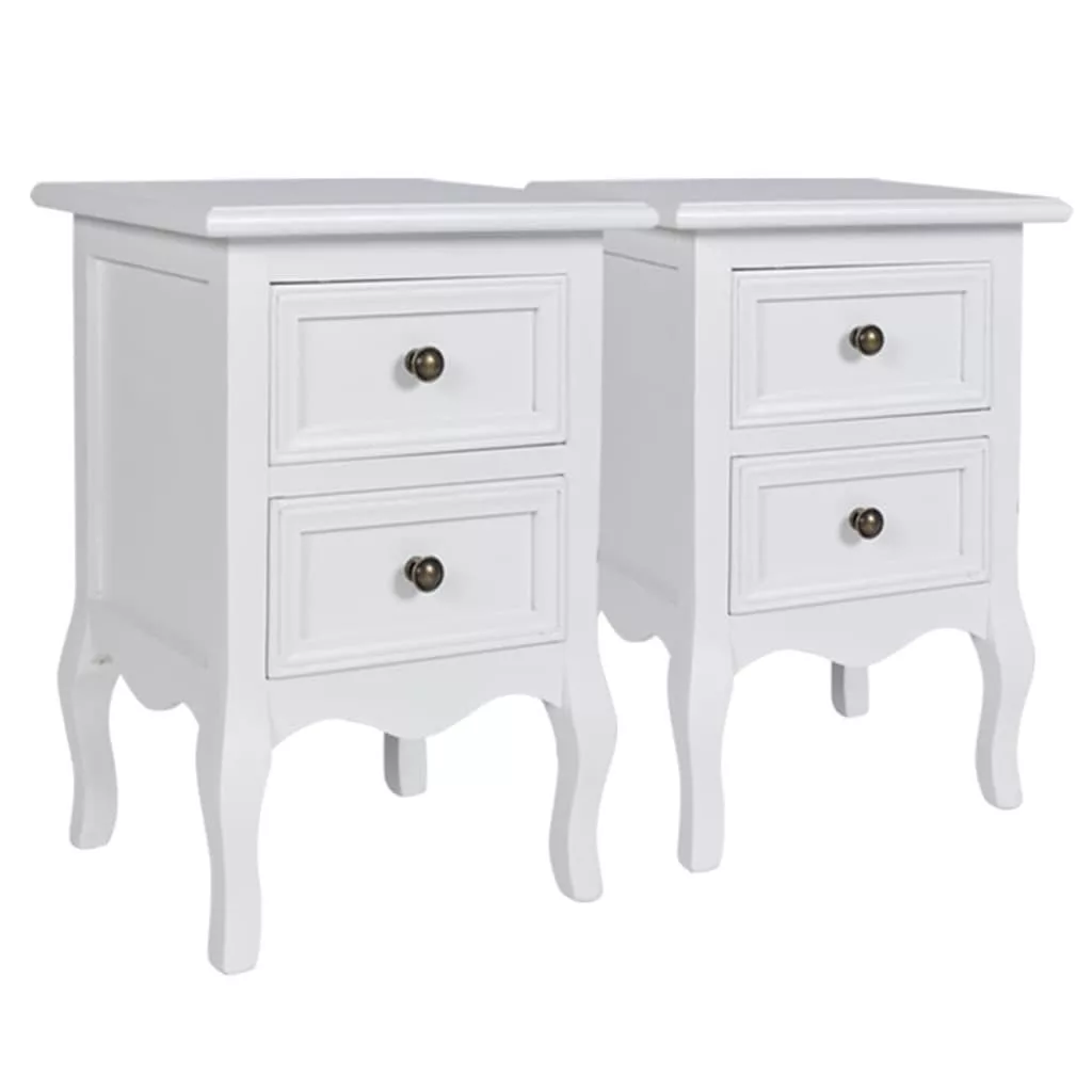 Ez a két antik stílusú éjjeliszekrény nagyméretű fiókokkal lett felszerelve, így mindig elérhető közelségben tarthatja ágy mellett szükséges holmijait.Mindegyik éjjeliszekrény két fiókkal lett felszerelve. Tiszta, lakkozott, valódi fa fiókjainak köszönhetően még elegánsabb ez az éjjeliszekrény. Kúp alakú lábakkal és csiszolt krómgombokkal lett ellátva. Strapabíró fehér MDF burkolatot kapott. A csomag 2 db éjjeliszekrényt tartalmaz kartondobozba csomagolva. Figyelem, a bútor kézzel készült fából és fehérre lett festve, így apróbb tökéletlenségek előfordulhatnak rajta.