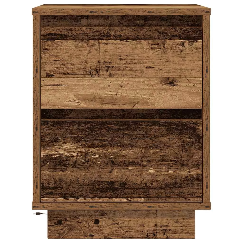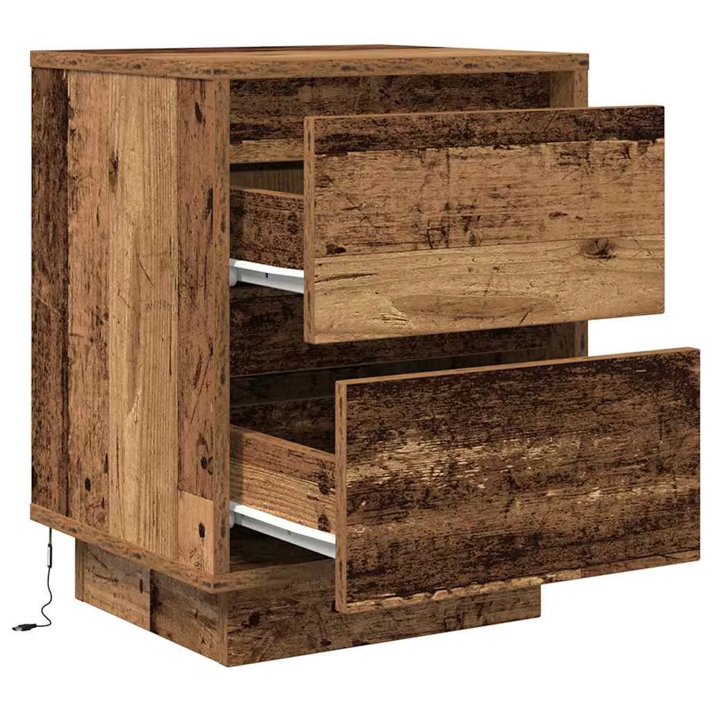 2 db antik fa éjjeliszekrények LED világítással 38x34x50 cm