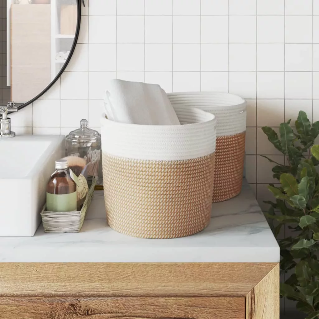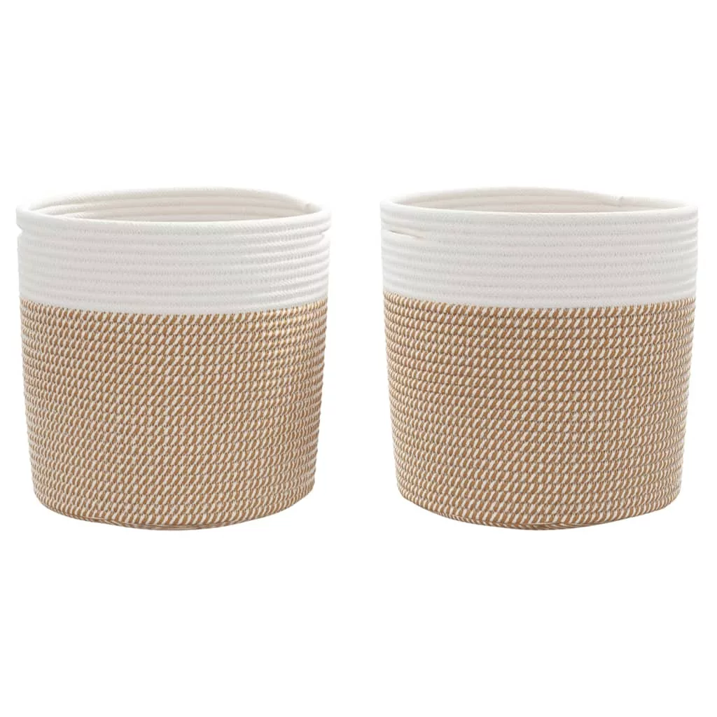 2 db barna és fehér pamut tárolókosár Ø28 x 28 cm