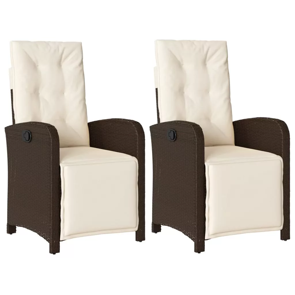 2 db barna polyrattan dönthető kerti szék lábtartóval