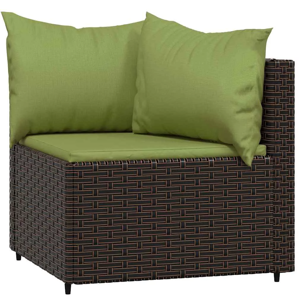 2 db barna polyrattan kerti sarokkanapé párnákkal