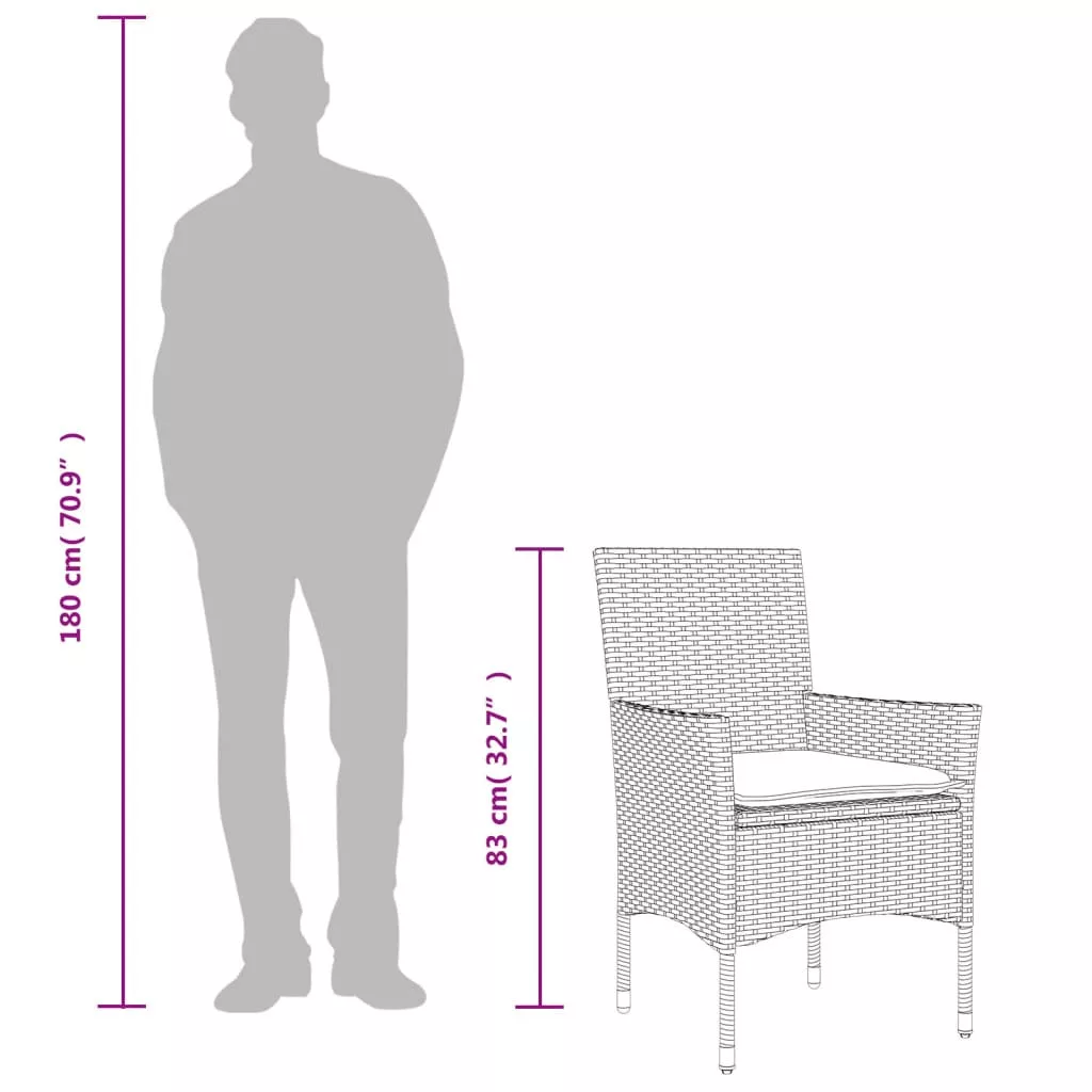Pihenjen és élvezze a szabad levegőt ezeken a kényelmes kerti székeken! Tartós anyag: A PE rattan, más néven polyrattan, egy erős, kevés karbantartást igénylő szintetikus anyag, amely úgy néz ki, mint a természetes rattan. Könnyű, könnyen tisztítható, tartóssága és időjárásálló tulajdonságai miatt gyakran használják kültéri bútorok készítéséhez.Kényelmes ülés: A háttámlával és alacsony karfákkal rendelkező kerti szék a lehető legnagyobb kényelmet nyújtja.Levehető és mosható huzat: Ezek az ülőpárnák levehető huzattal rendelkeznek az egyszerű mosás és karbantartás érdekében.Robusztus és stabil váz: A porszórt acél váz biztosítja, hogy a kerti bútor erős és stabil legyen a mindennapi kültéri használathoz. Jó tudni:A kültéri bútor szépségének megőrzése érdekében javasoljuk, hogy vízálló huzattal fedje be. Maximum 110 kg ülésenként. Ügyeljen a nyílt tűz és más erős hőforrások veszélyére a termék közelében.