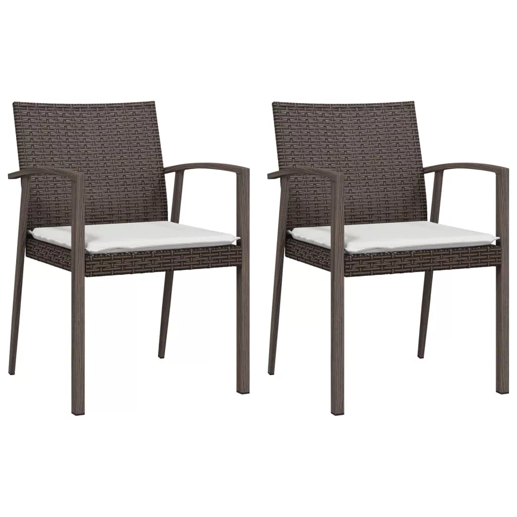 2 db barna polyrattan kerti szék párnával 56,5 x 57 x 83 cm