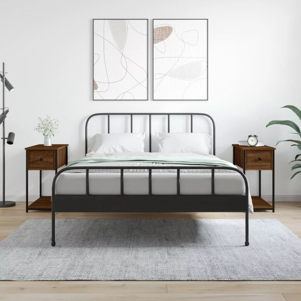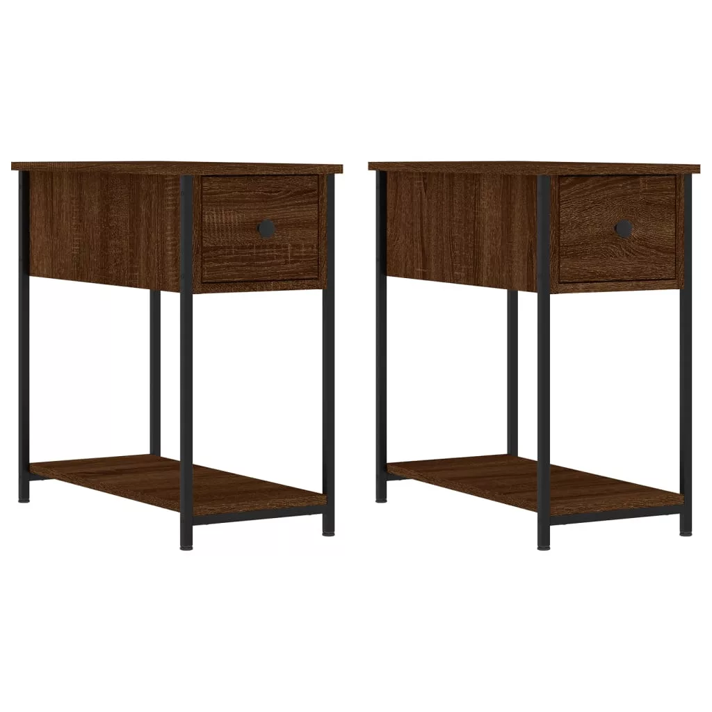 2 db barna tölgyszínű szerelt fa éjjeliszekrény 30x60x60 cm