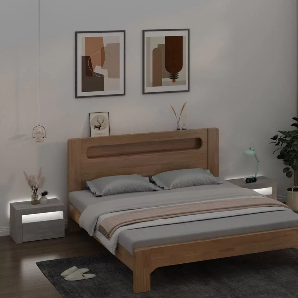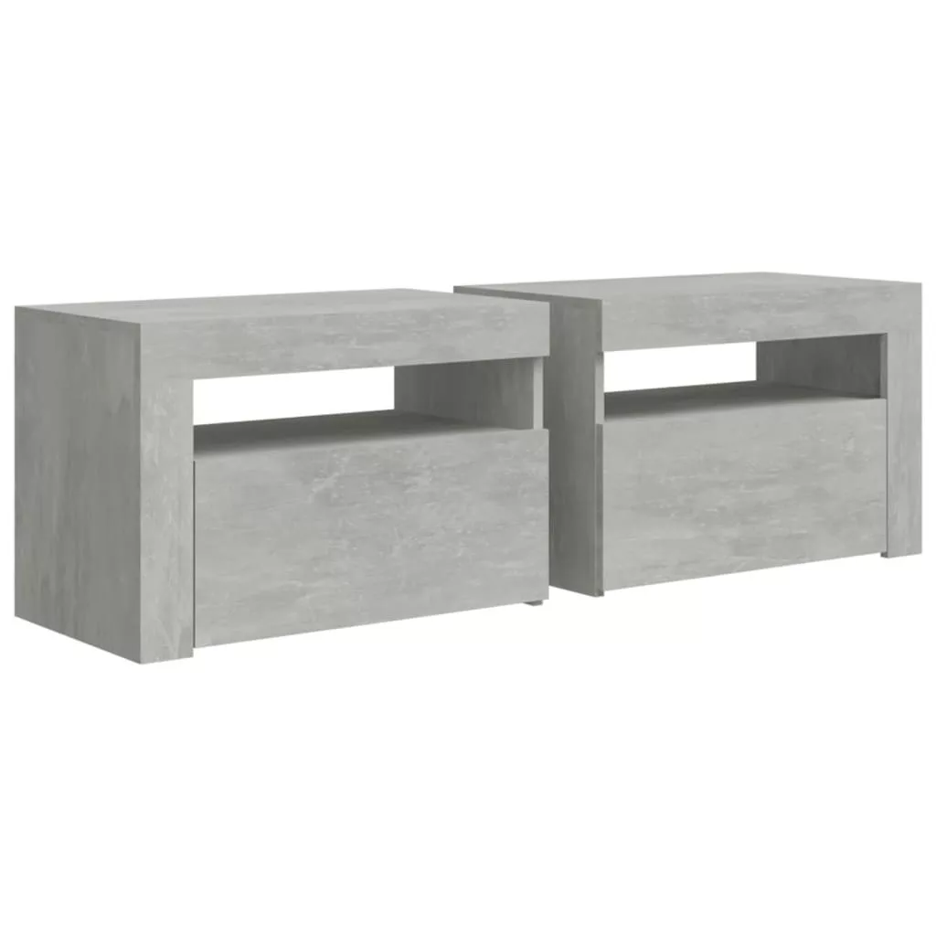 2 db betonszürke éjjeliszekrény LED-del 60 x 35 x 40 cm