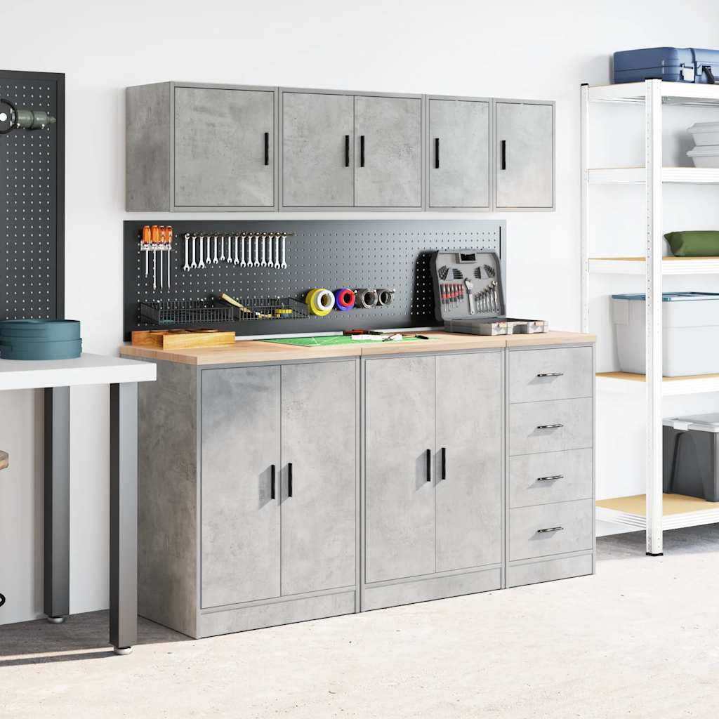 2 db betonszürke szerelt fa garázs fali szekrények