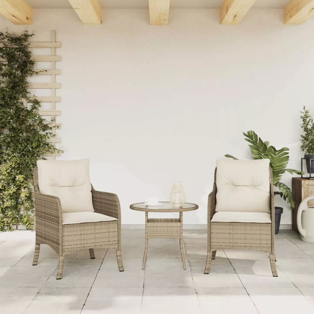 2 db bézs polyrattan kerti szék párnával