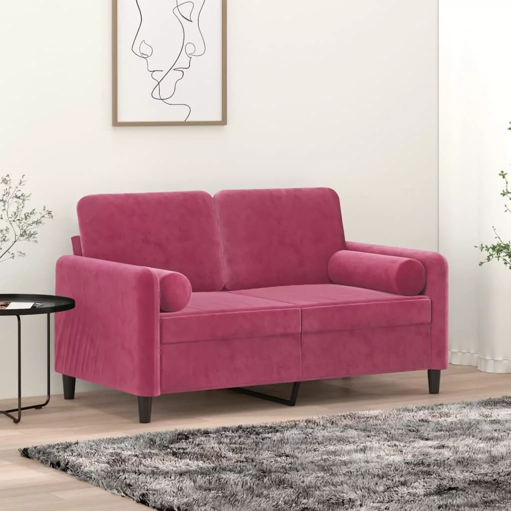 2 db bordó bársony díszpárna Ø15 x 50 cm