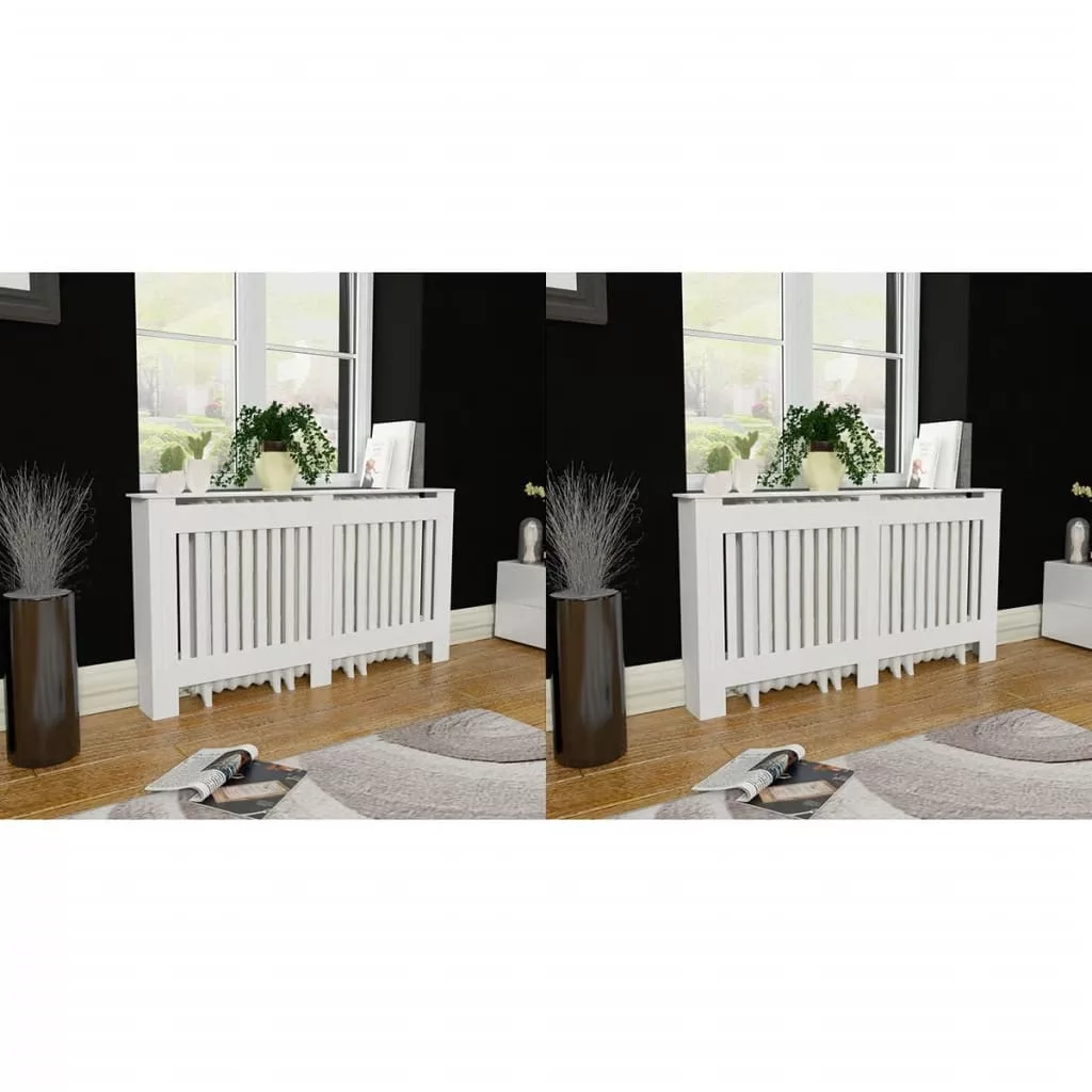 Ez a radiátorburkolat stílusos és praktikus kiegészítője lesz nappalijának. Arra lett tervezve, hogy dekoratívabbá tudja tenni radiátorát, és további pakolóhelyeket biztosítson könyvek, fényképek, díszek stb. számára. A kiváló minőségű MDF-ből készült radiátorburkolat erős és tartós. Ez a fűtőtest burkolat modern, lécezett tervezéssel lett ellátva, mely bármely beltéri stílushoz talál és könnyedén össze is szerelhető. A szállítmány 2 db radiátorburkolatot tartalmaz.