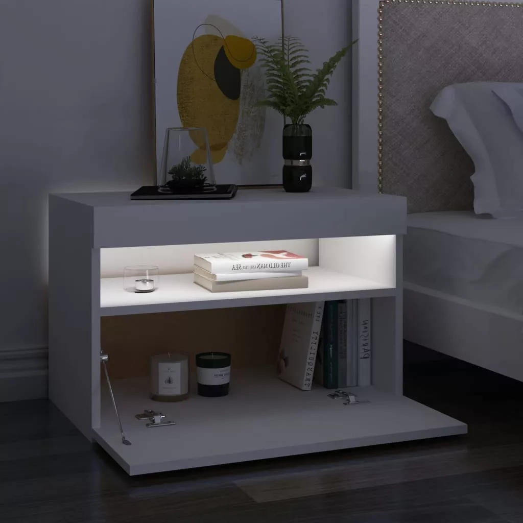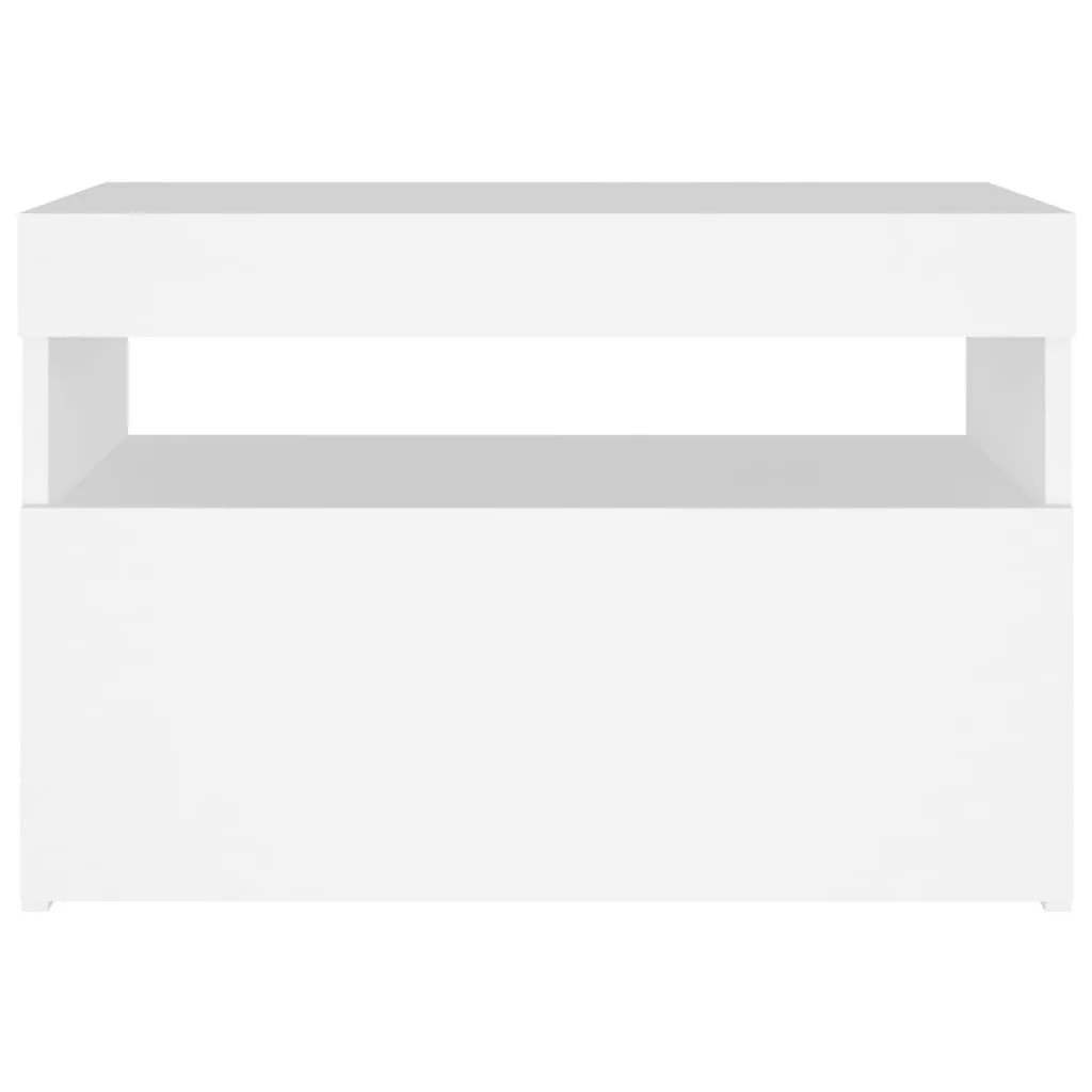 2 db fehér éjjeliszekrény LED-lámpákkal 60x35x40 cm szerelt fa