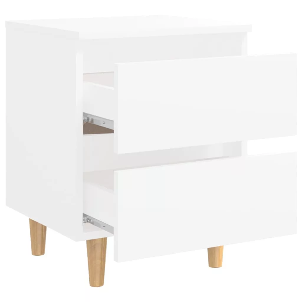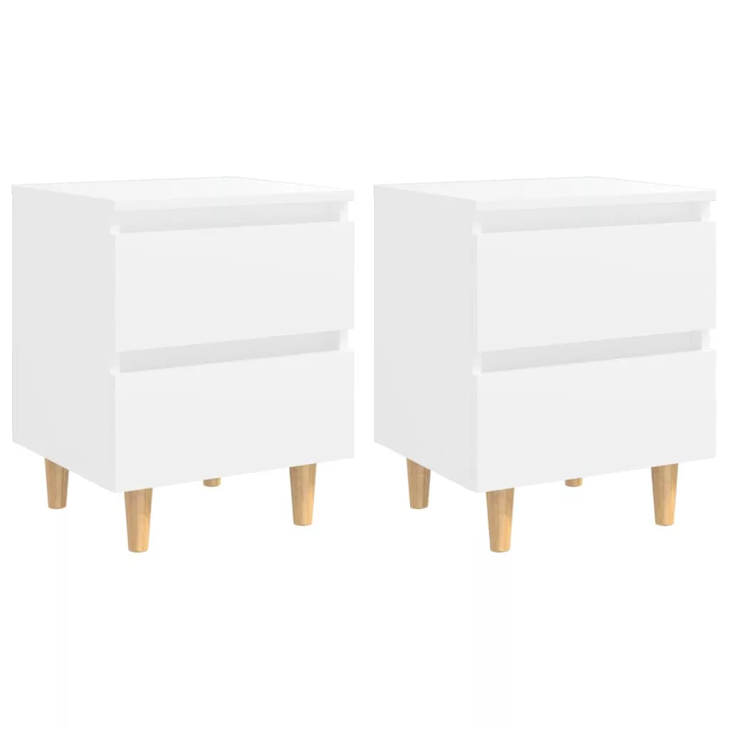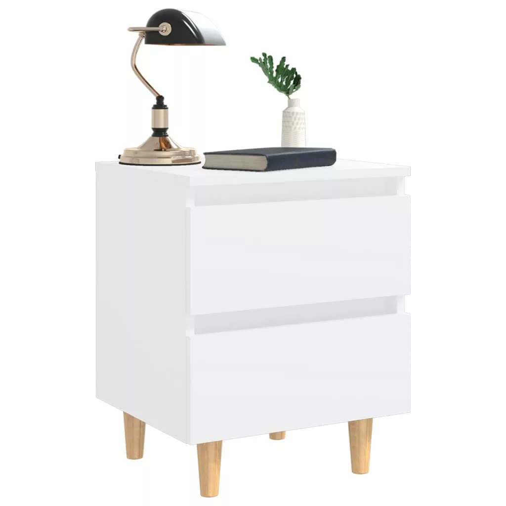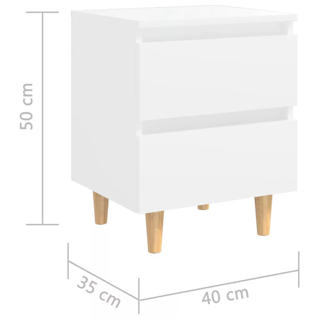 2 db fehér éjjeliszekrény tömör fenyőfa lábakkal 40x35x50 cm