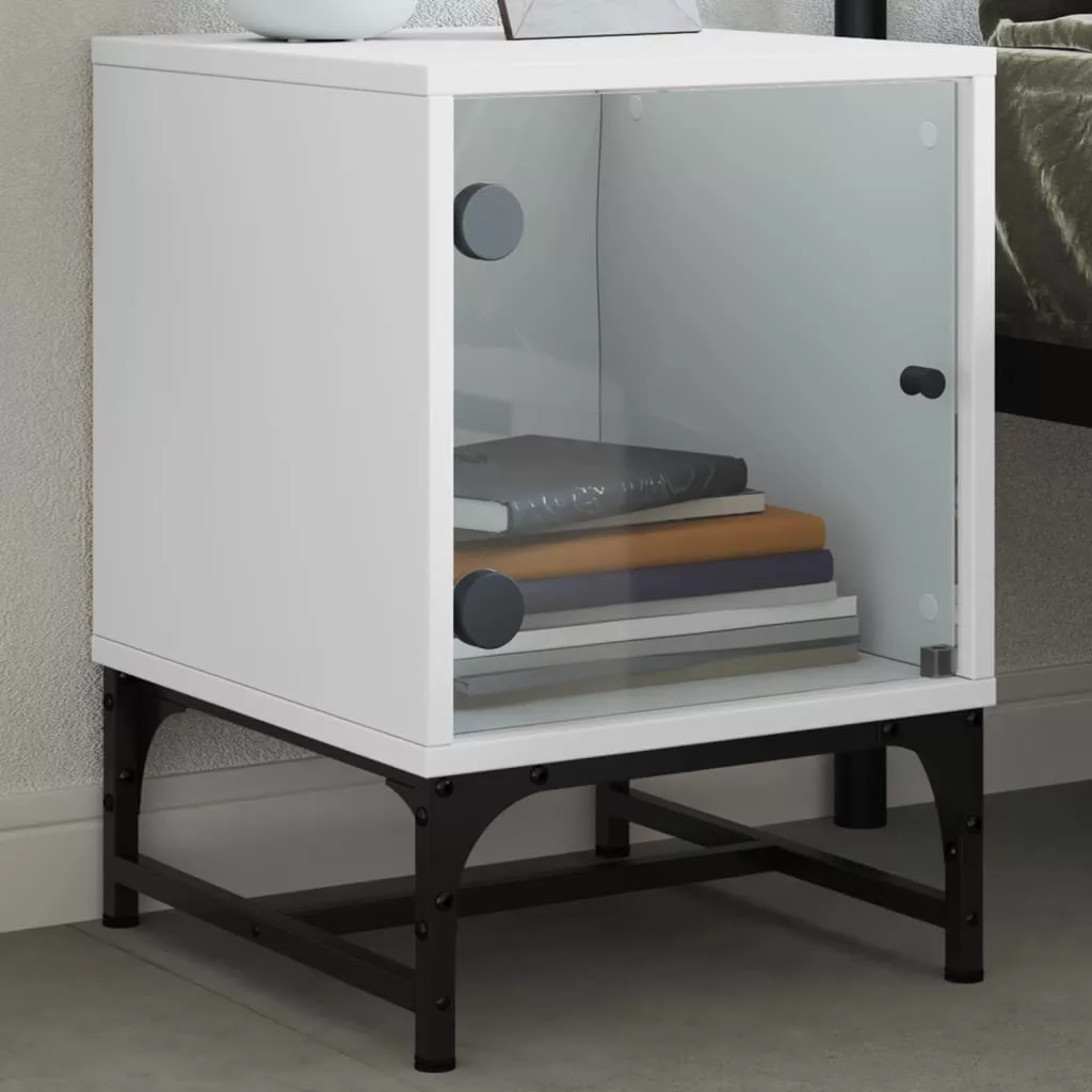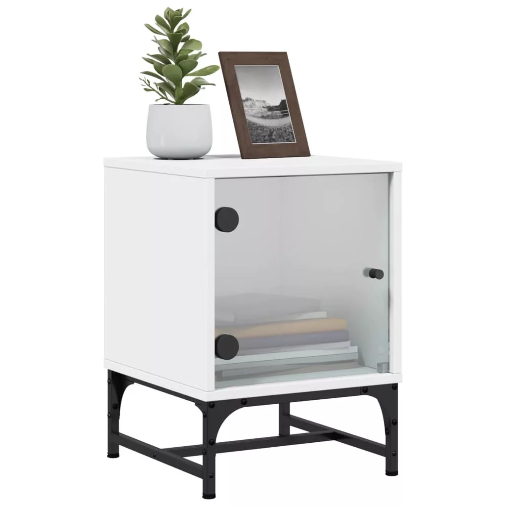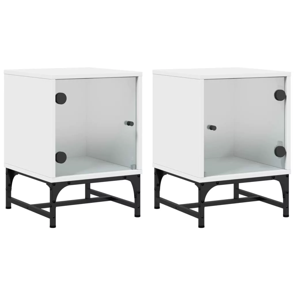 2 db fehér éjjeliszekrény üveg ajtóval 35 x 37 x 50 cm